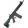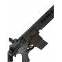 Использование при изготовлении привода Cyma M4 MK18 CQB алюминиевого сплава и полимера с ударопрочными характеристиками обеспечивает ему легкий вес. Особенность автомата – телескопический приклад эргономичной формы, обеспечивающий настройку длины индивидуально. Верхний ресивер оснащен ris-цевьем, что позволяет установить сошки, тактическую рукоять, фонарь, ЛЦУ и любое другое навесное оборудование. Дополнительно предусмотрена направляющая для оптики.
