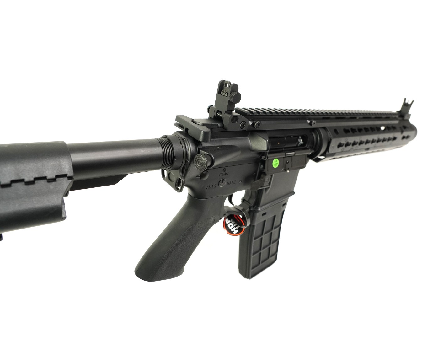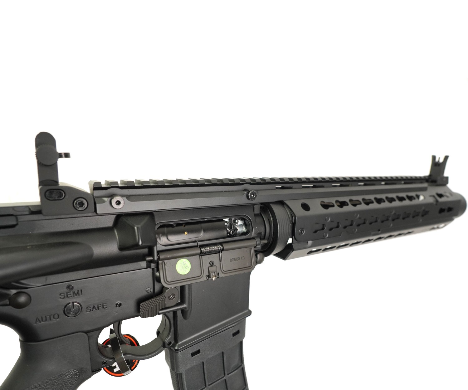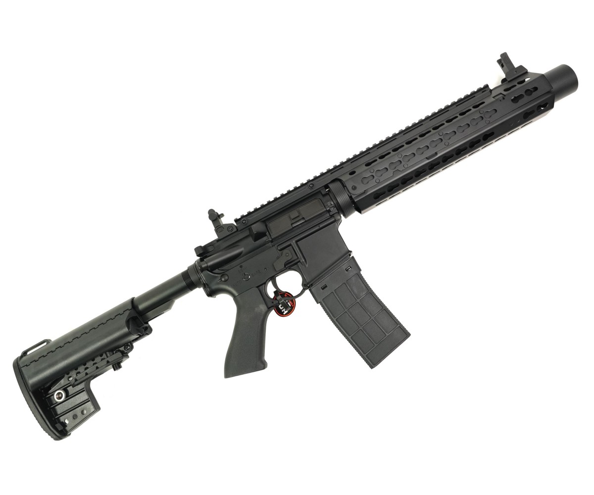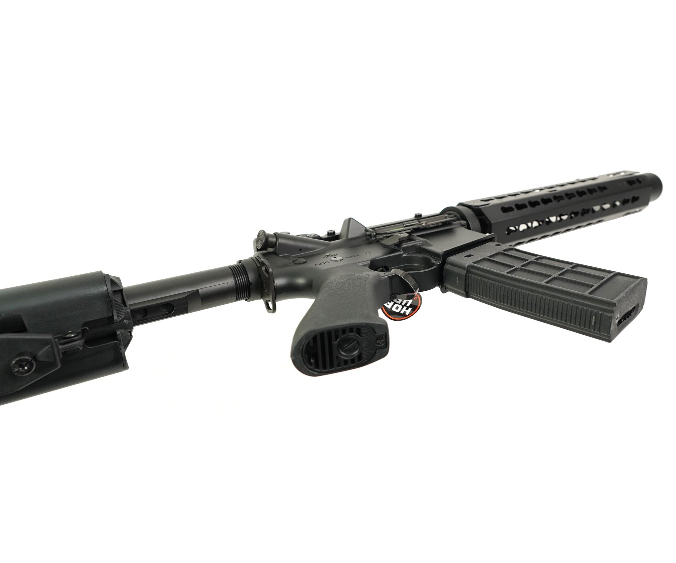 Особенности: | телескопический приклад, KeyMod цевье, складной диоптрический целик |