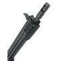 Помимо этого, на цевье установлена ris-планка. Характерной особенностью автомата является установка 6-позициооного телескопического приклада. Предусмотрены антабки для ношения автомата на ремне. Используемые материалы – алюминиевый сплав для корпуса и пластик ABS, из пластика здесь выполнены приклад и пистолетная рукоятка. Штатные прицельные приспособления представлены диоптрическим прицелом и мушкой. Целик с возможностью регулировки в двух плоскостях, мушка регулируется по вертикали. При необходимости прицельные приспособления демонтируются.