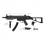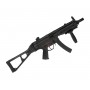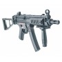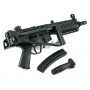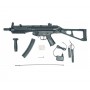 За счет установки ris-планок с приводом можно использовать дополнительный обвес – фонарик, прицел, ЛЦУ. Приклад складной, что повышает маневренность игрока. Преобладающий материал – алюминиевый сплав, приклад с рукояткой и цевьем выполнены из прочного пластика. Изделие отличается хорошим качеством сборки и высокой степенью сходства с боевым прототипом компании «Хеклер и Кох». Вес привода 3,3 кг, длина с прикладом 75 см. В комплекте: магазин, шарики, аккумулятор и ЗУ, а также шомпол и руководство по эксплуатации.