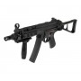 Страйкбольный пистолет-пулемет Cyma H&K MP5 UMP Blowback (CM049) – это электропневматическая модификация немецкого карабина, привод с имитацией хода затвора и складным прикладом. Как источник энергии здесь выступает аккумулятор CQB или АК-типа, устройство расположено в цевье автомата. Внутри находится гирбокс второго поколения и настраиваемый хоп-ап, доступ к которому открывается после взведения затвора.