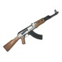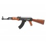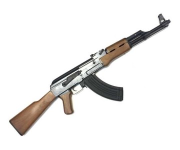 Версия страйкбольного автомата АК 47 также относится к распространенным моделям среди электрических изделий. Отмечается качественное выполнение, а также максимальное подобие оригиналу, что создает высокий спрос на продукцию. В нем множество деталей из металла. В магазине способно поместиться 600 шаров, вес – 3070 грамм. Аккумуляторный источник энергии, а эффективная дальность составляет 55 м. Параметры темпа стрельбы – 880 BBs/min. В модели для страйкбола используется двухрежимный огонь, можно стрелять очередью или одиночными. AEG электропневматический тип.