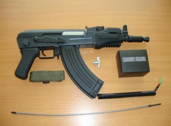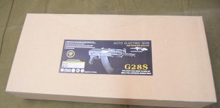 Galaxy G.28S - качественная страйкбольная модель укороченного автомата Калашникова без приклада. Начальная скорость выстрела шарика около 90 метров в секунду. Источник энергии - аккумулятор.