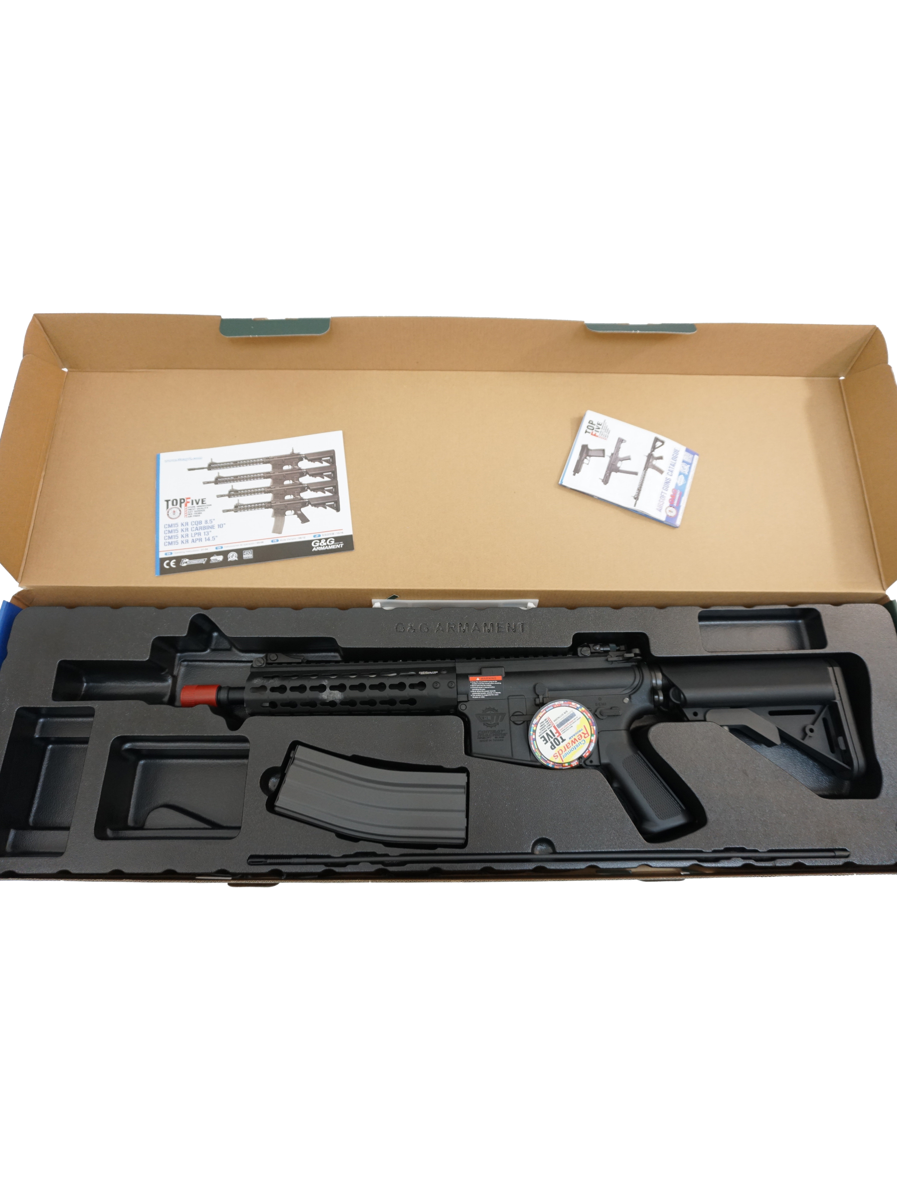 В комплекте поставки предусмотрено всё необходимое для старта: привод, магазин, шомпол, инструкция и коробка. G&G CM15 KR-CQB 8.5" — это отличный выбор для игроков, которым важны компактность, высокая скорострельность и надёжность в условиях ближнего боя.