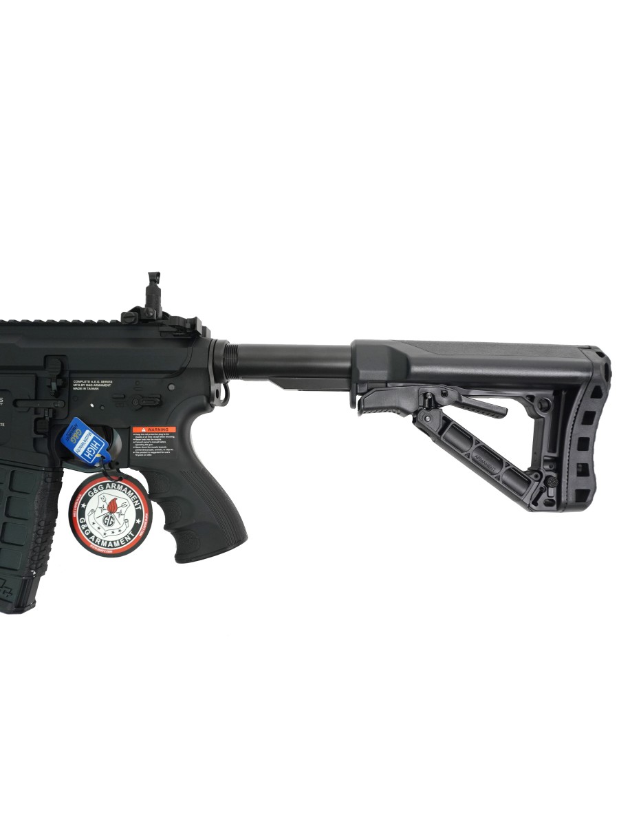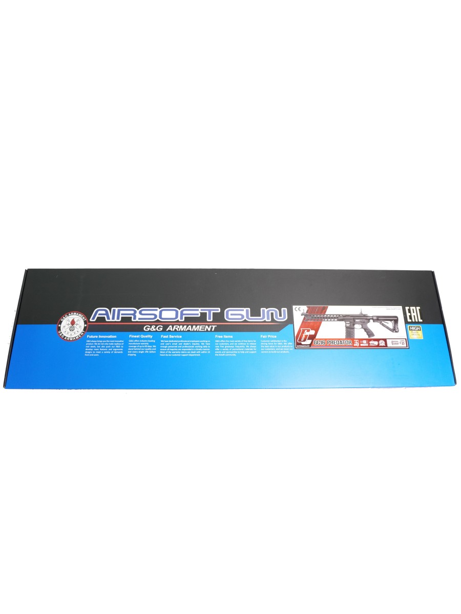 Страйкбольный автомат G&G GC16 Predator (EGC-016-PTR-BNB-NCM) – это компактный привод из линейки разработок на базе М4, предложение от тайваньской компании, хорошо известной любителям пневматики. Мотор автомата на 2500 оборотов, источником энергии является аккумулятор в отсеке приклада, который приобретается дополнительно.