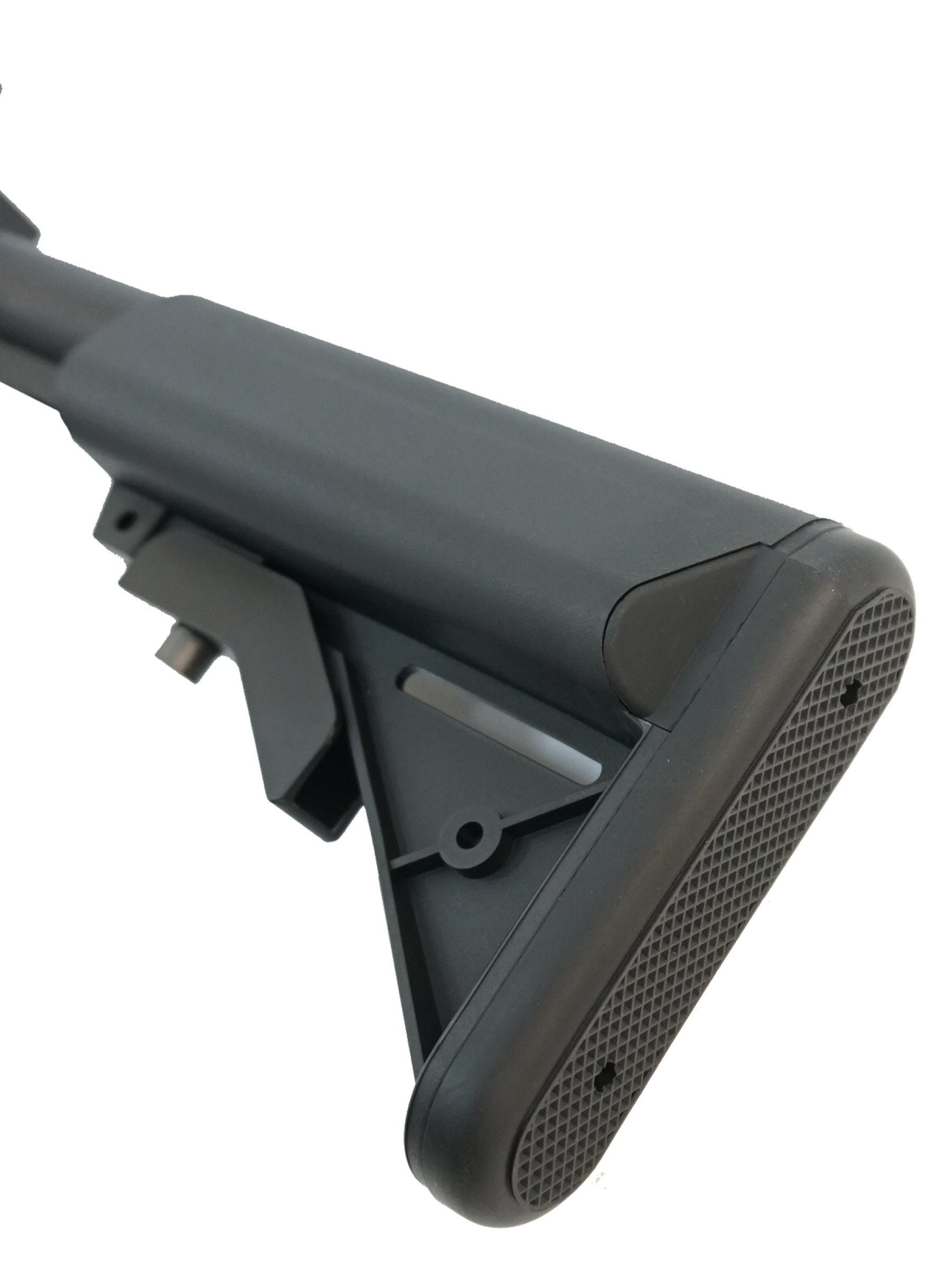 G&G TR4-18 Light Black оснащен телескопическим 6-позиционным прикладом, позволяющим адаптировать длину автомата под индивидуальные параметры стрелка. Наличие планки Weaver / Picatinny дает возможность устанавливать различные прицельные приспособления и тактические аксессуары. Автомат имеет два режима стрельбы – полуавтоматический и автоматический.