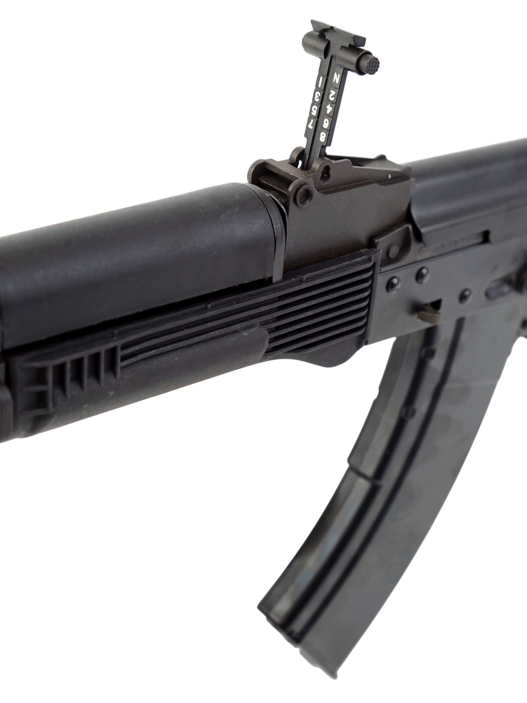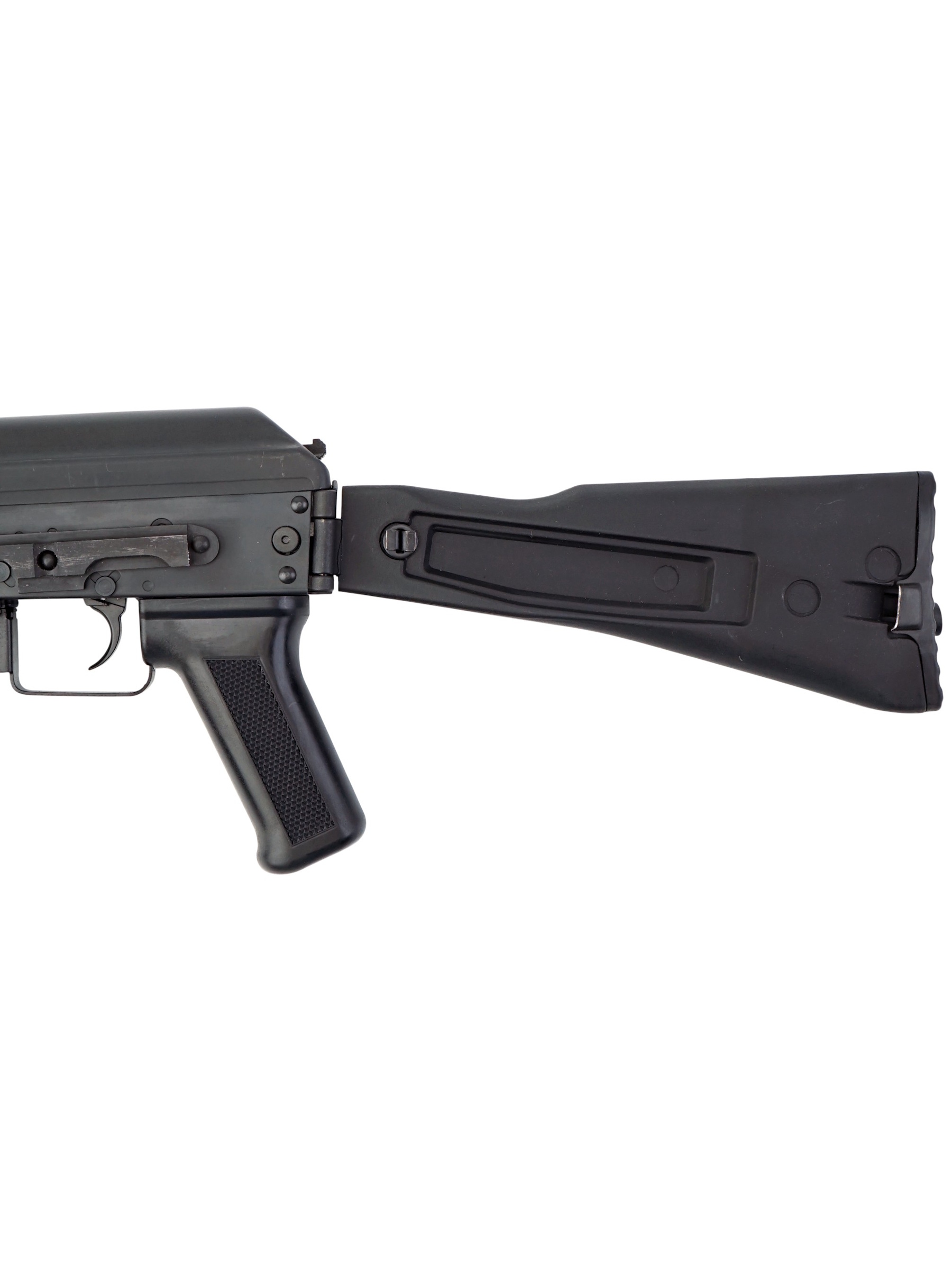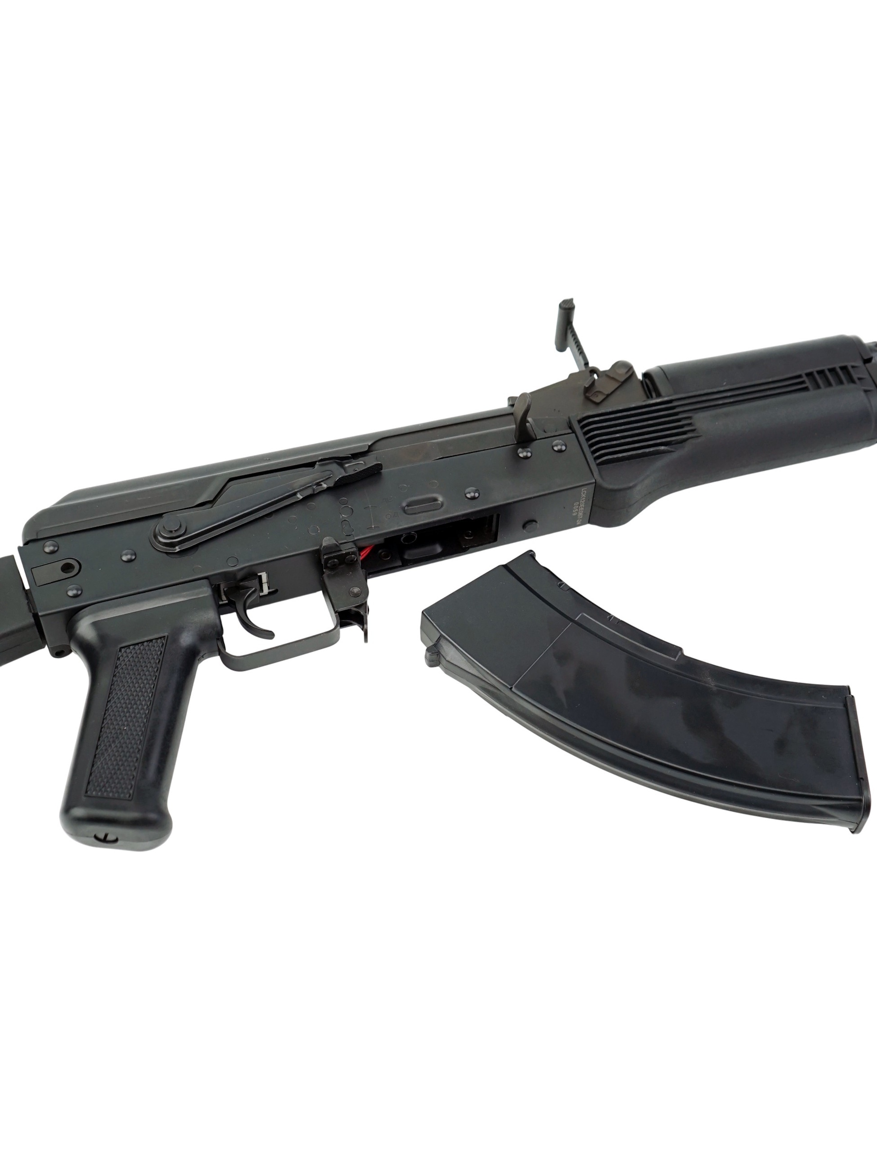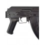 В качестве основного материала для автомата использована конструкционная легированная сталь высокого качества. Цевье и приклад изготовлены из качественного пластика. Крепление «ласточкин хвост» на ствольной коробке позволяет закрепить оптику и кронштейны с направляющей Пикатини. Приклад со вращающейся антабкой складывается влево. Автомат отличается высокой удароустойчивостью и долговечностью. Вес – 3,28 кг, обща длина с прикладом – 83 см.