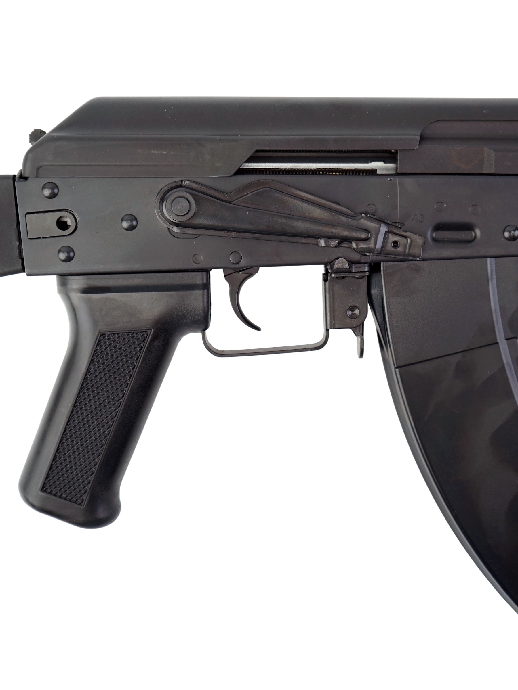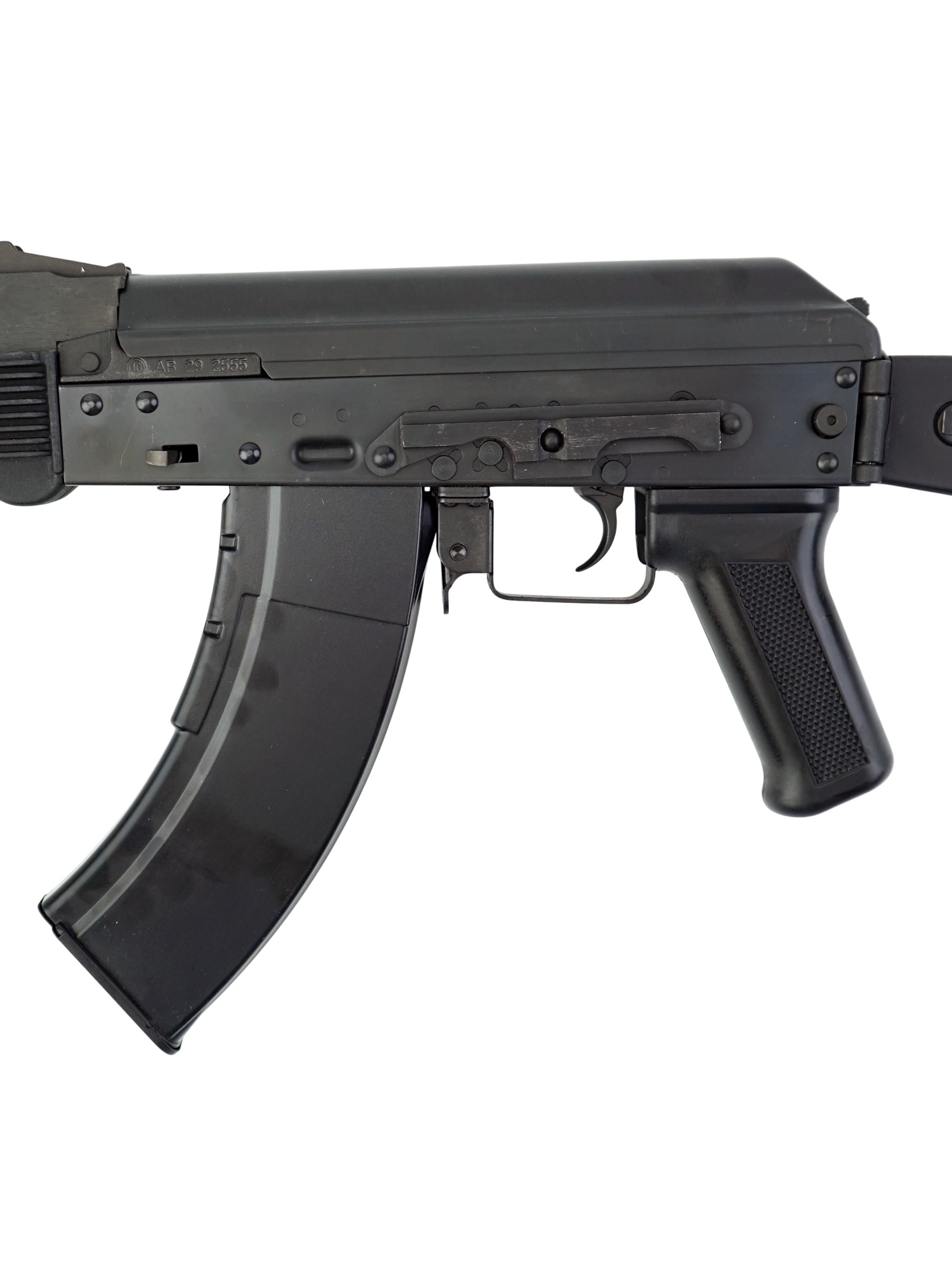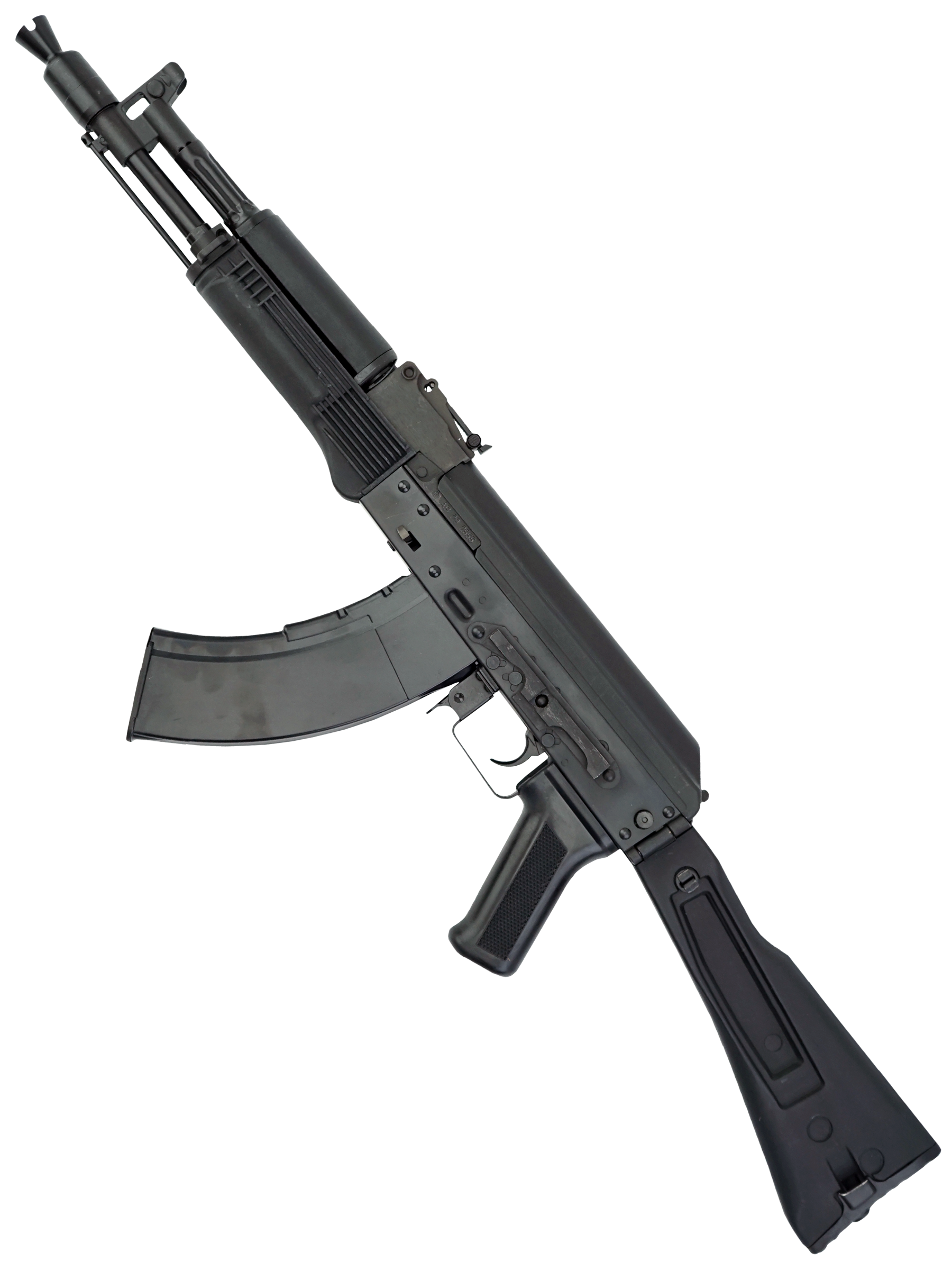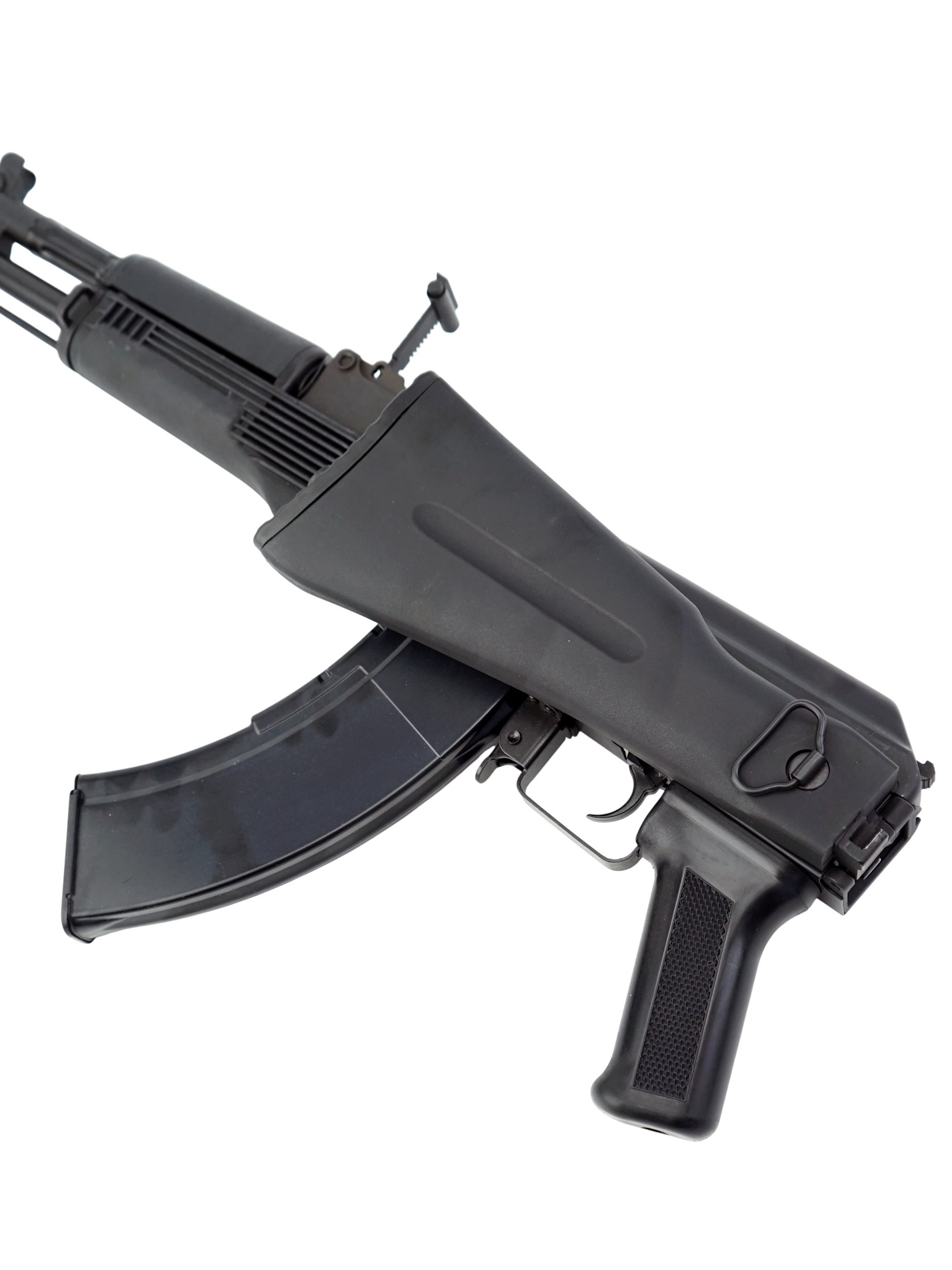 В качестве основного материала для автомата использована конструкционная легированная сталь высокого качества. Цевье и приклад изготовлены из качественного пластика. Крепление «ласточкин хвост» на ствольной коробке позволяет закрепить оптику и кронштейны с направляющей Пикатини. Приклад со вращающейся антабкой складывается влево. Автомат отличается высокой удароустойчивостью и долговечностью. Вес – 3,28 кг, обща длина с прикладом – 83 см.