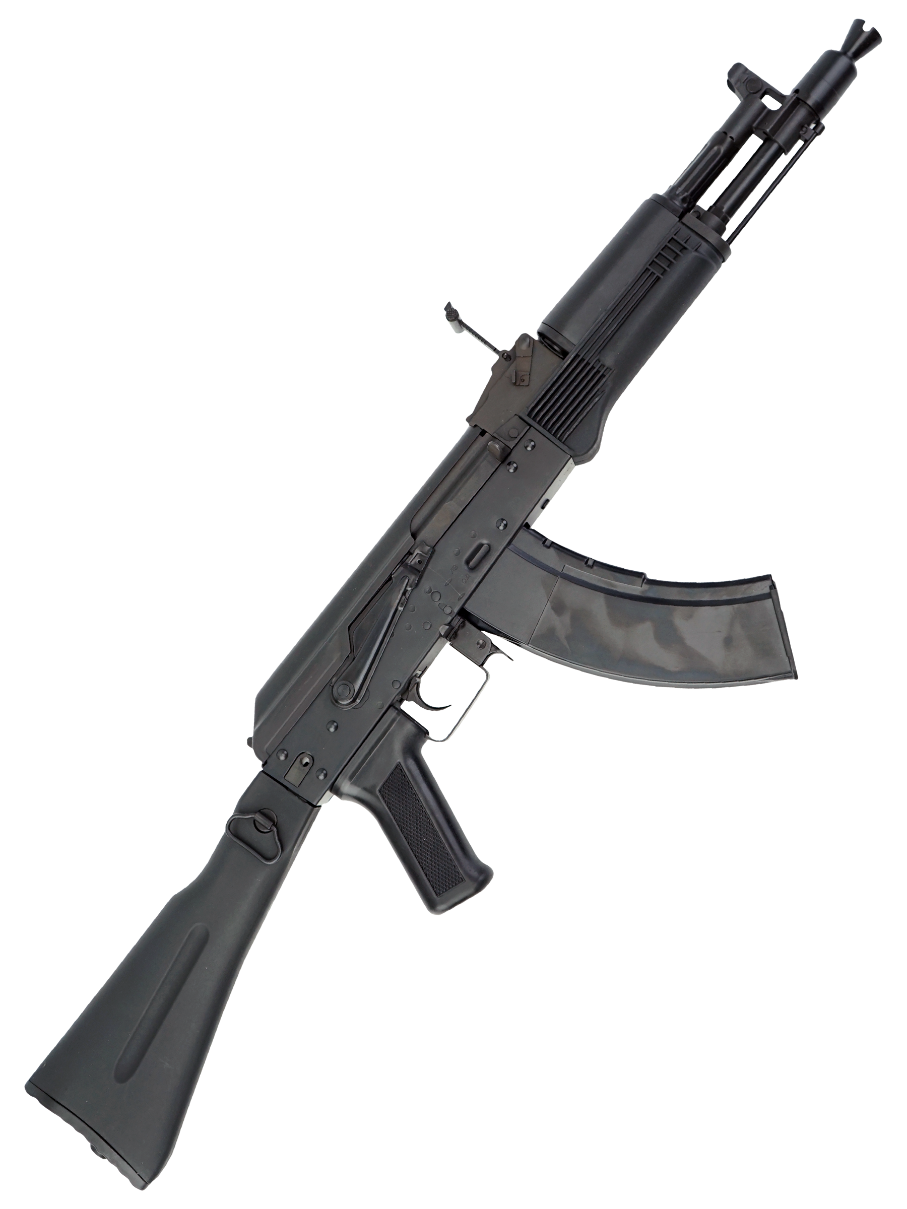 Боевой прототип этого страйкбольного автомата является эталоном автоматического оружия и неофициальным символом России. В основе модификации АК-104 лежит АК-74М, нос более укороченным прикладом и рассчитанный на патрон, стандартный для стран НАТО – 5,56х45 мм.