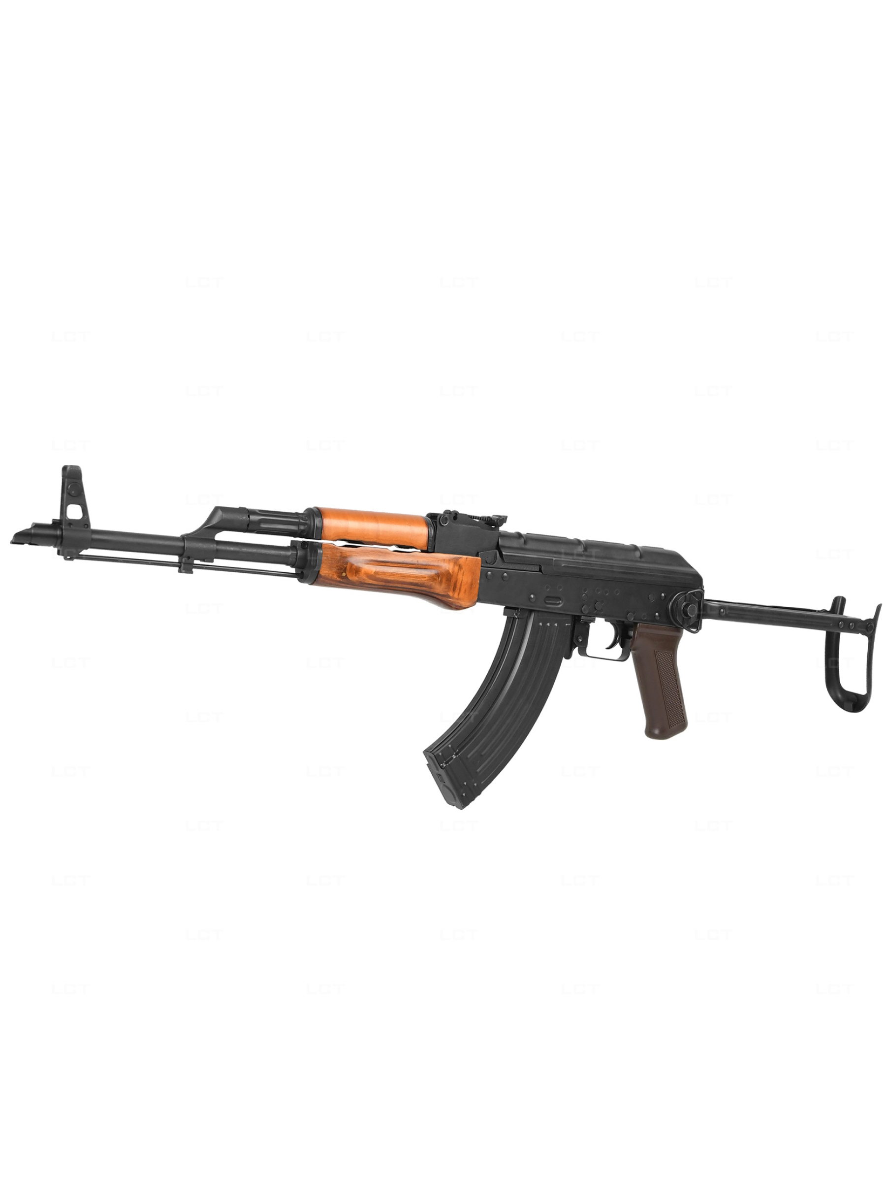 Автомат АКМС стал развитием АКМ, он был создан для десантных групп, и отличался от АКМ наличием складывающегося под цевье приклада. Компания LCT специализируется на страйкбольных модификациях известного армейского оружия, и выделяется на рынке благодаря созданию максимально аутентичных и качественных копий и приемлемым ценам.