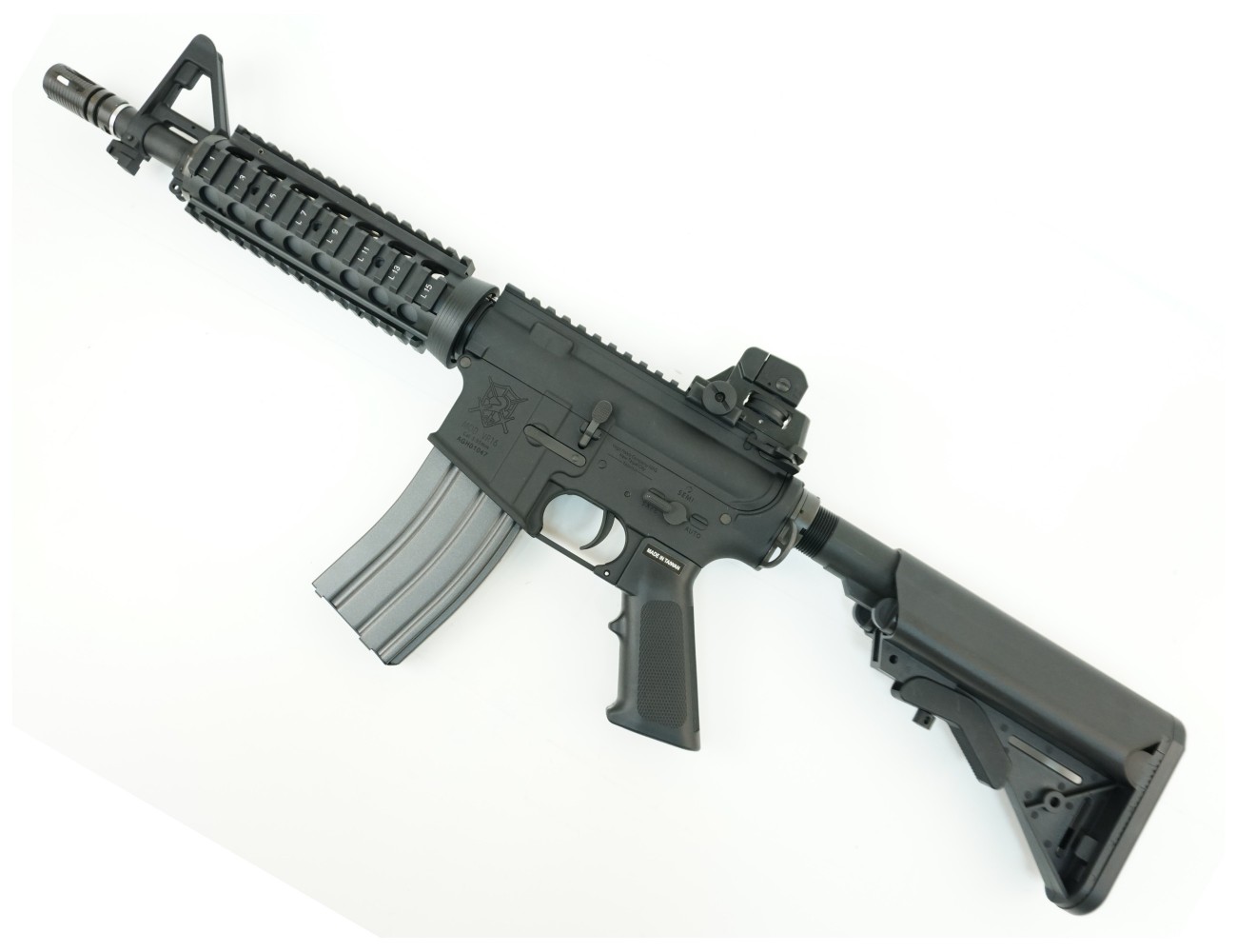 За счет использования системы Hop-up c возможностью регулировки шарик стабилен в полете и получает способность поражать дальние цели. Автомат изготовлен из ABS-пластика (пистолетная рукоять и приклад) и легкого алюминия (ответственные детали и корпус). Верхнее защитное покрытие глубокого черного цвета обеспечивает защиту автомата от коррозии.