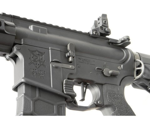 Страйкбольный привод VFC VR16 Saber CQB MOD1 AEG – это электропневматическая модификация на базе боевой штурмовой винтовки Кольт M4 / M16. Привод разработан компанией Vega Force Company (Тайвань). В качестве источника энергии используется аккумулятор типа «нунчаки».