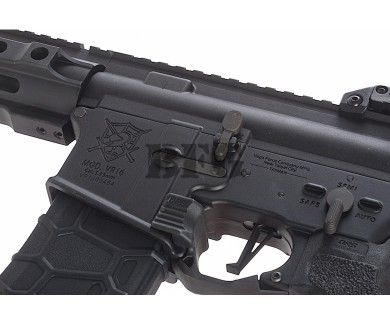 В данной модификации установлен гирбокс второй версии, надежный и практичный в использовании. Величина дульной энергии не более 3 Дж, что позволяет приобрести автомат без регистрации и разрешения. Автомат VFC VR16 Saber CQB стреляет шариками 6 калибра, емкость механического магазина составляет 120 штук. Скорость шарика при вылете из ствола автомата – 120 м/с. За стабильное положение шарика в полете отвечает регулируемая система хоп-ап. Стреляет оружие как в полуавтоматическом режиме, так и очередями.