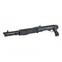 Страйкбольный дробовик ASG Franchi SPAS-12 (18554) – это спринговая модификация итальянского ружья, изготовленная датским брендом по лицензии. Это оружие нуждается в ручном взведении пружины перед каждым новым выстрелом. Величина дульной энергии - 0,6 Дж. Боеприпасы – шарики BB пластиковые калибра 6 мм, они по 30 штук помещаются в шелл-патроны. Начальная скорость полета шарика – 75 м/с. Система хоп-ап неподвижная.