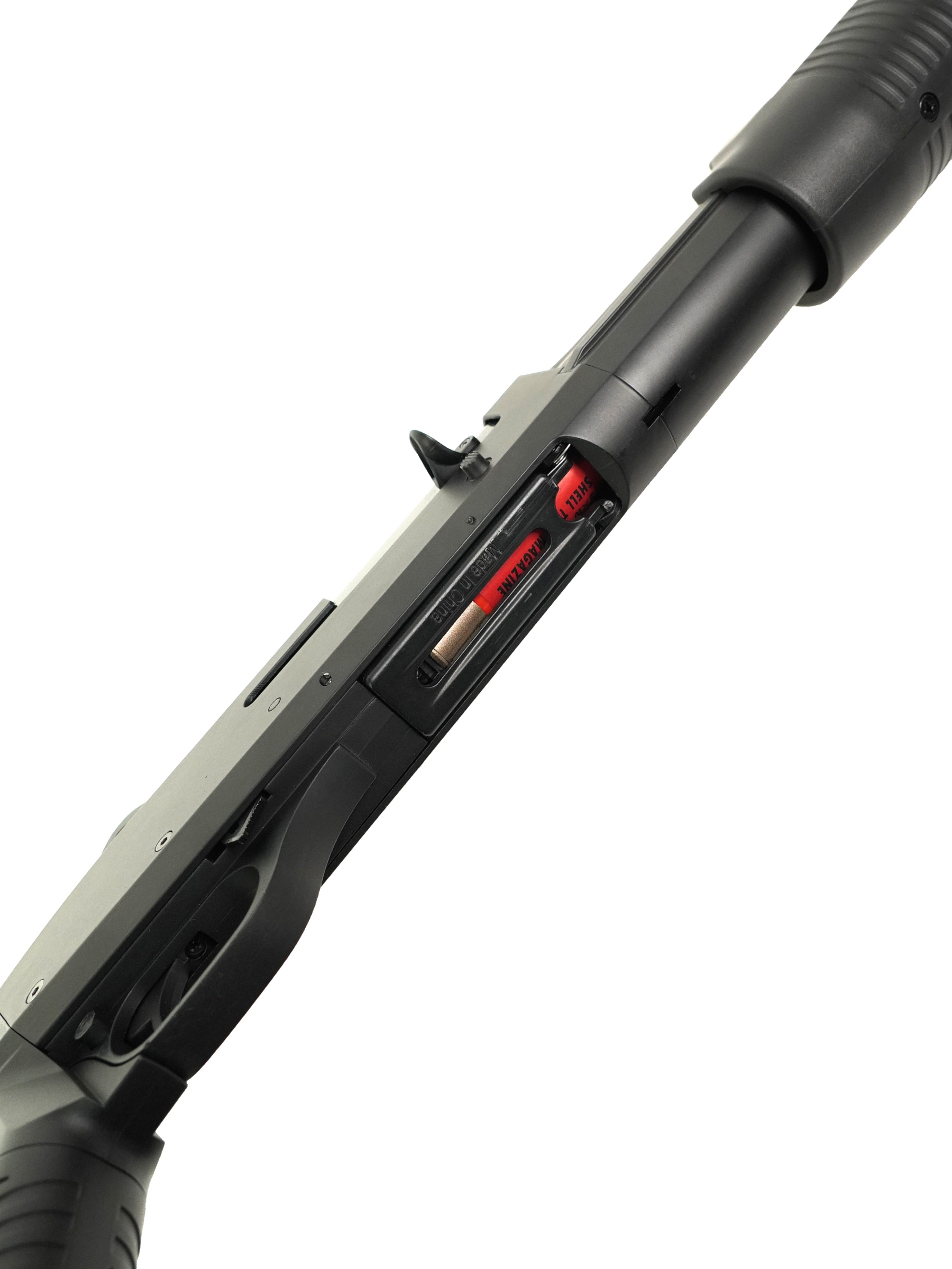 Магазин дробовика «шелл» имитирует боевые патроны 12 калибра, и вмещает до 30 единиц боеприпасов (стандартных для пневматики шариков калибром 6 мм). Количество снарядов в магазине должно быть кратным трем. Средняя скорость выстрела – около 90 м/с. Загрузка зарядов в шелл производится в ускоренном режиме с помощью лоадера, входящего в комплектацию дробовика. Дробовик Cyma Benelli M3 Super 90 Tactical продается свободно без предъявления разрешения и лицензии.