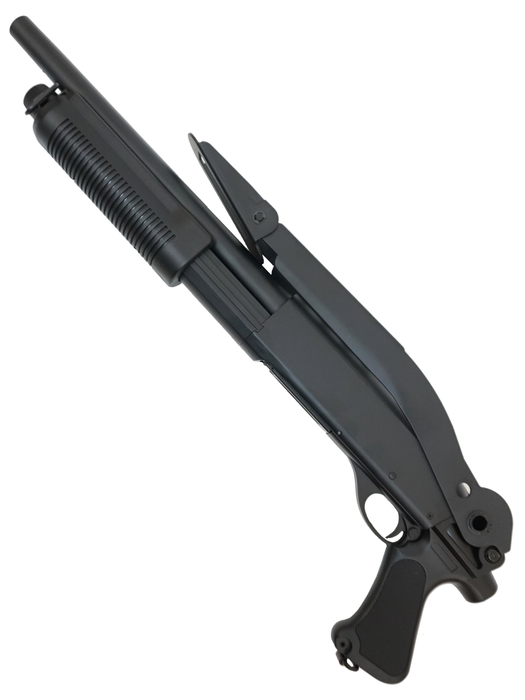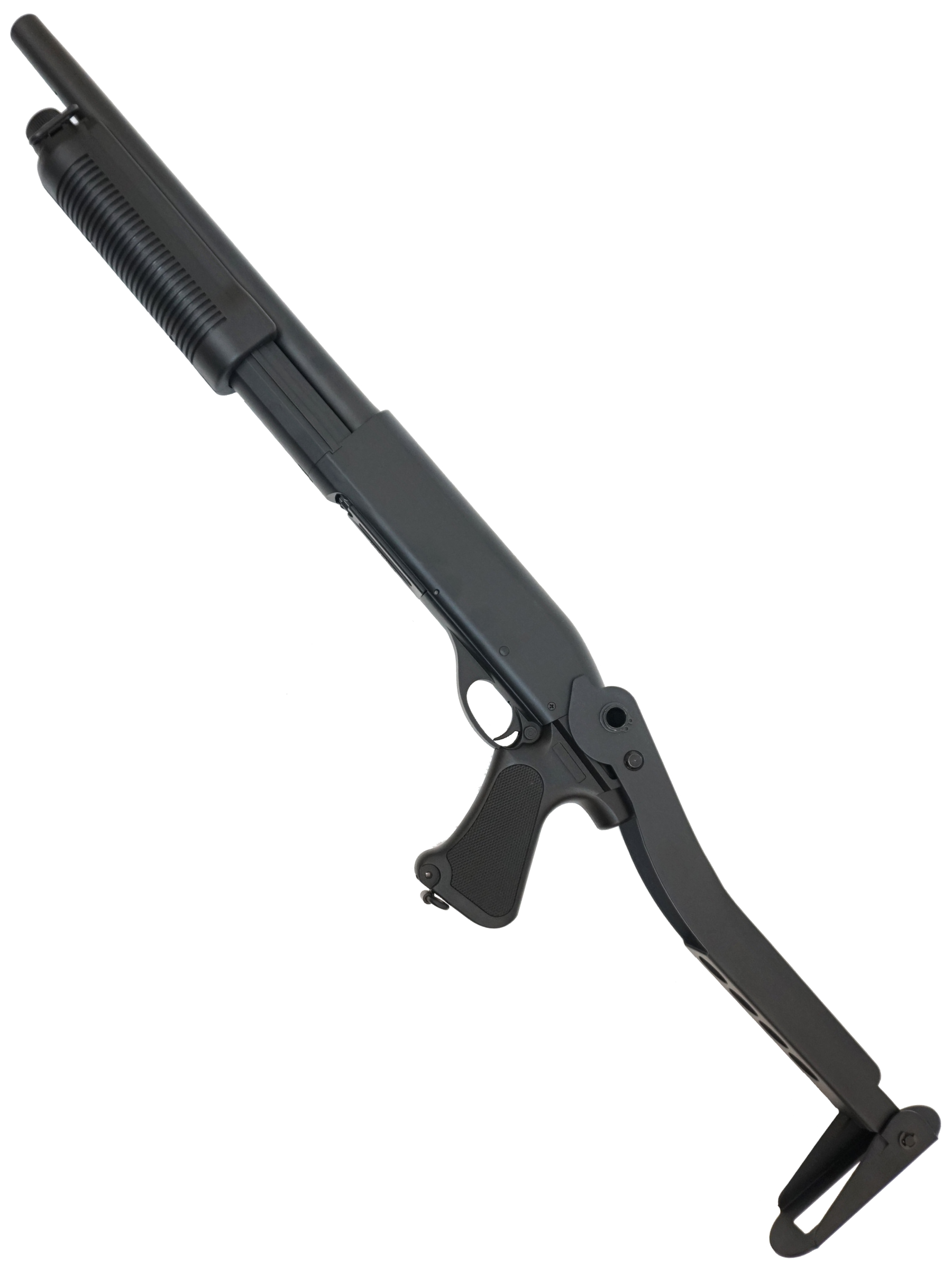 Cyma Remington M870 Compact со складным прикладом – идеальное оружие для игр в павильонах и на открытых площадках, компактная и надежная модификация по умеренной цене.