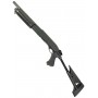 Корпус дробовика выполнен из прочного ABS-пластика, а внутренние элементы – из алюминиевого сплава, обеспечивая надежность и долговечность конструкции. Еще одной особенностью является телескопический приклад, позволяющий регулировать длину дробовика (940 / 820 мм) для максимального комфорта и удобства использования. Длина ствола составляет 300 мм.