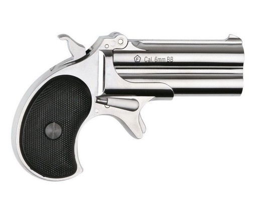 Страйкбольный пистолет ASG Marushin Derringer green gas (16915) – это миниатюрная модификация с оригинальным исполнением, копия американского Дабл Дерринджер Remington. Принцип действия этого экземпляра основан на работе газовых смесей. Заправка газом осуществляется через клапан в нижней части рукоятки.