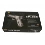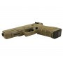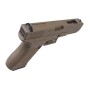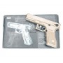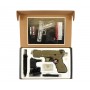 Наличие ниже ствола ris-планки позволяет применять с пистолетом дополнительный обвес. Изделие изготовлено из пластика с хорошей устойчивостью к ударам, гирбокс металлический. Цвет оружия песочный. Вес – 0,6 кг, длина 20 см. Комплектуется шариками, механическим магазином, аккумулятором с ЗУ, инструкцией.