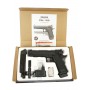 Пистолет выполнен из легкого алюминиевого сплава и полимерного материала высокой прочности, и не только по внешнему виду, но и по весу максимально схож с оригиналом. Ствол гладкий. Рукоятка увеличенного размера, с характерной шероховатой поверхностью для повышения удобства хвата. Вес изделия 0,75 кг, длина 22,5 см. Изделие поставляется в широкой комплектации, включающей: магазин, спидлоадер, шарики для тестирования пистолета, аккумулятор с ЗУ, паспорт.