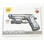Эта пружинная версия Beretta 92 изготовлена из пластика, поэтому ее вес почти втрое меньше огнестрельного экземпляра, и составляет 0,31 кг. Внешне изделие повторяет свой боевой прототип. На рукоятке присутствуют фактурные фигурные вставки для удобства его удержания. Длина изделия практически идентична оригиналу – 20 см. В комплекте – ЛЦУ и паспорт.