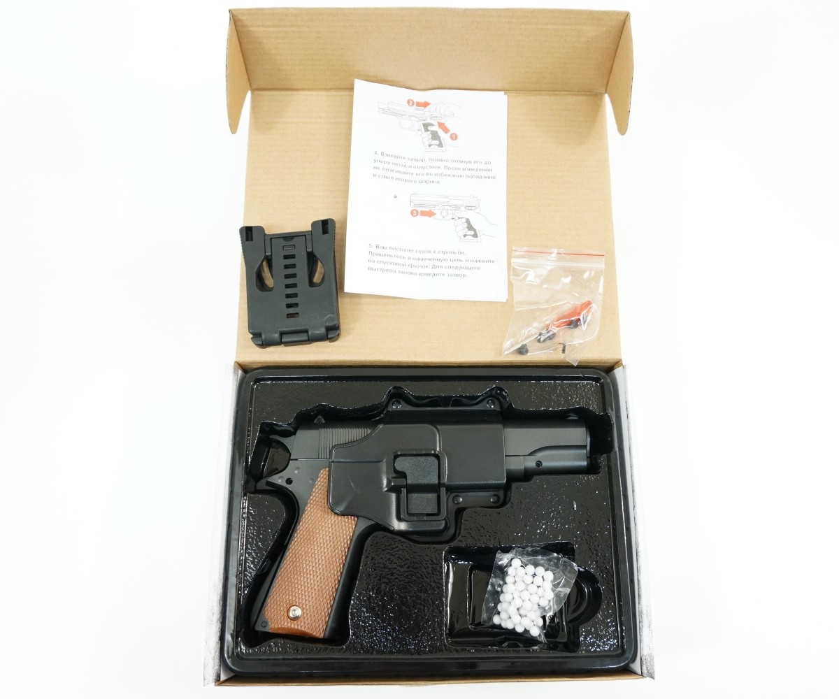 Описание пистолета Galaxy G.13+ Colt 1911 (черный, с кобурой):