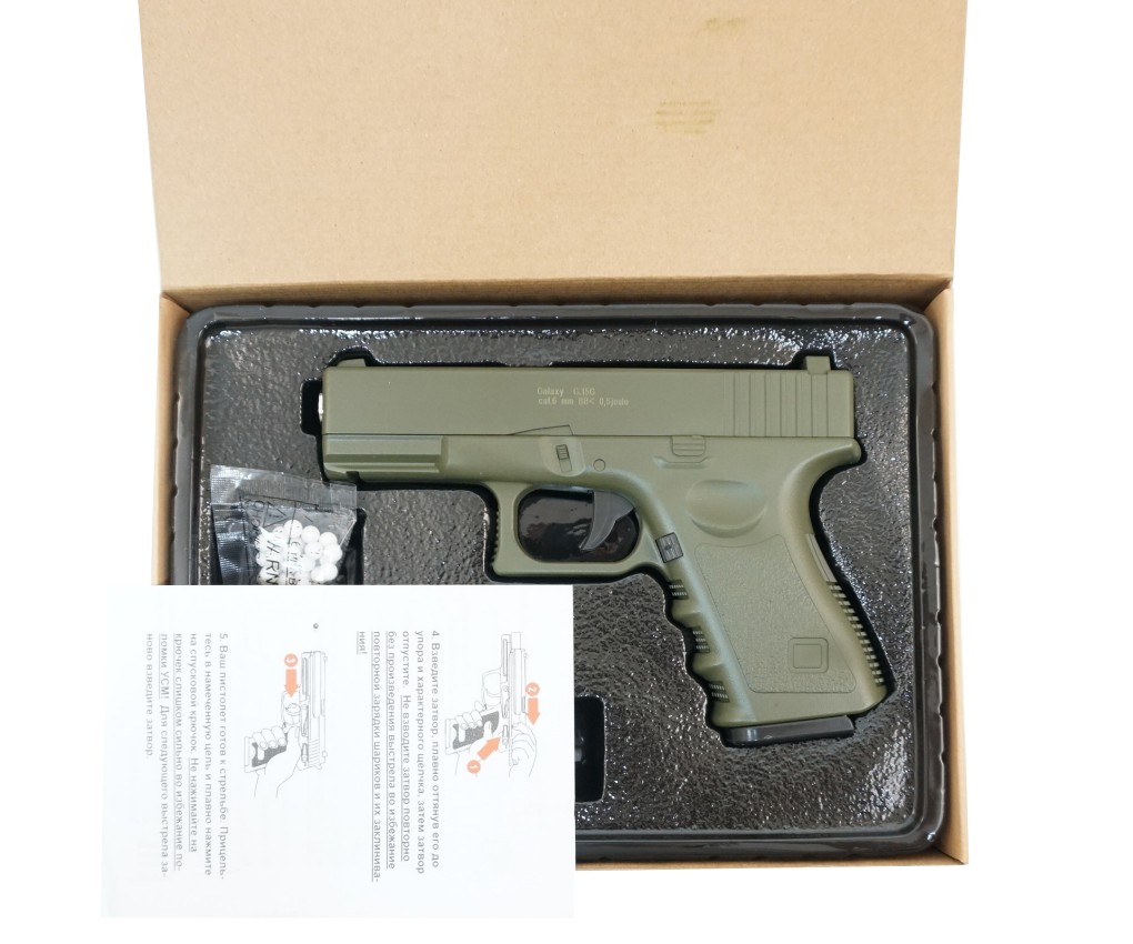 Описание пружинного пистолета Galaxy G.15G Green Glock 23: