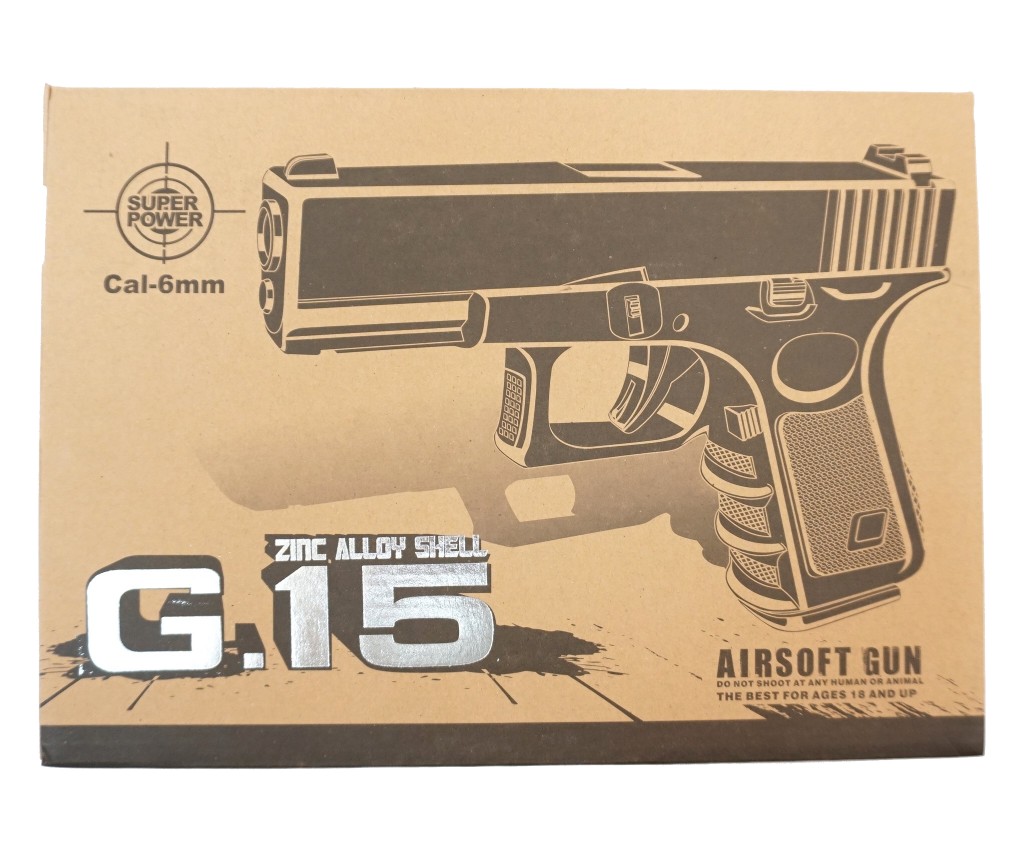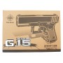 Galaxy G.15G - качественная спринговая страйкбольная модель классического пистолета Glock 17, изготовленная из качественного цинкового сплава и пластика. Начальная скорость выстрела шарика 70-79 метров в секунду.