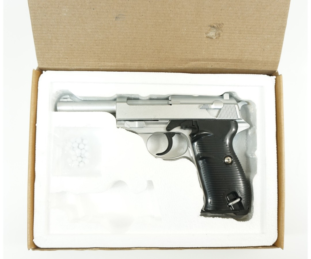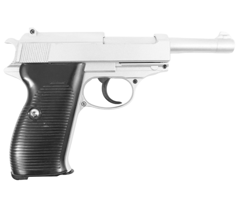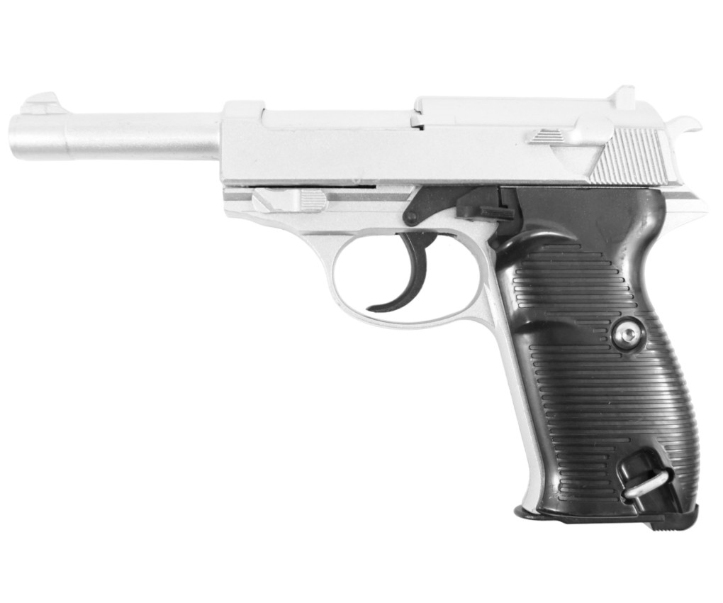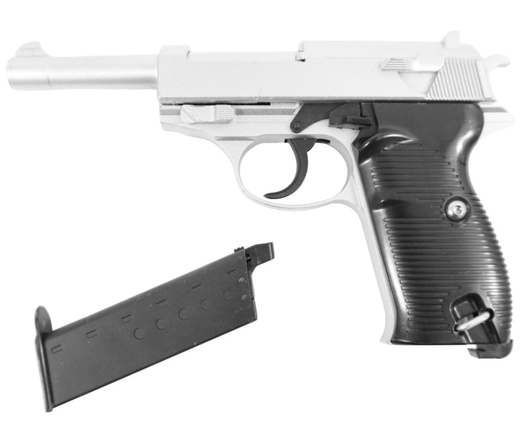 Пистолет страйкбольный Galaxy G.21S Walther P38 Silver представляет собой копию своего боевого прототипа - Walther P.38, который производится в Германии, изготовленную специально для игры в страйкбол. Будучи выполненным из оцинкованного металла и пластика, модель Galaxy G.21 тайваньского производства является более легкой, чем оригинал, тем не менее, полностью повторяет внешние характеристики настоящего пистолета, оставаясь абсолютно безопасной его копией.