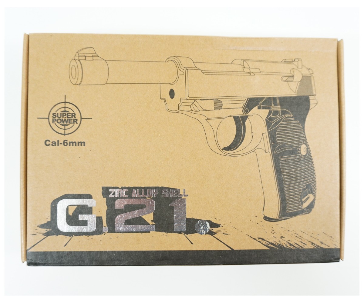 Galaxy G.21S - качественная спринговая страйкбольная модель классического пистолета Walther P38, изготовленная из качественного цинкового сплава и пластика. Начальная скорость выстрела шарика 60-69 метров в секунду.