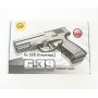 Основной материал изделия – цинковый сплав, обеспечивающий ему небольшой вес и хорошие прочностные характеристики. Часть компонентов выполнена из современного полимерного материала. Форма рукоятки эргономичная, обеспечивает удобство удержания оружия. Весит пистолет 0,56 кг, длина его 21 см. Поставляется с руководством пользователя, упакован в картонную коробку.