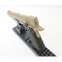Изделие выполнено из цинкового сплава и пластика, и имеет внушительный внешний вид. Цвет корпуса – песочный, рукоятка с пластиковой накладкой черная. Поверхность накладки имеет рифление, препятствующее выскальзыванию оружия из рук. Наличие планки Вивера под стволом позволяет использовать вместе с пистолетом дополнительный обвес. Общий вес пистолета 0,53 кг, длина – 22 см. Продается с паспортом.