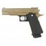 Страйкбольный пистолет Galaxy G.6D (Colt Hi-Capa), песочный – это интересная разработка известного азиатского производителя пневматического оружия, модификация на базе Кольта Hi-Capa. Пистолет относится к спринговому моделям, их преимущества – в экономичности использования (не требуют дополнительных расходников, кроме шариков ВВ), простоте конструкции и бюджетной цене.