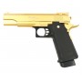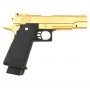 Страйкбольный пистолет Galaxy G.6GD (Colt Hi-Capa), золотистый – это пружинная версия Кольт М1911 в эффектном внешнем исполнении. Пистолет, как и другие виды пневматического оружия этого типа, отличает простота эксплуатации, отсутствие необходимости покупать баллончики с газом или аккумуляторы, а также возможность использования в любую погоду.
