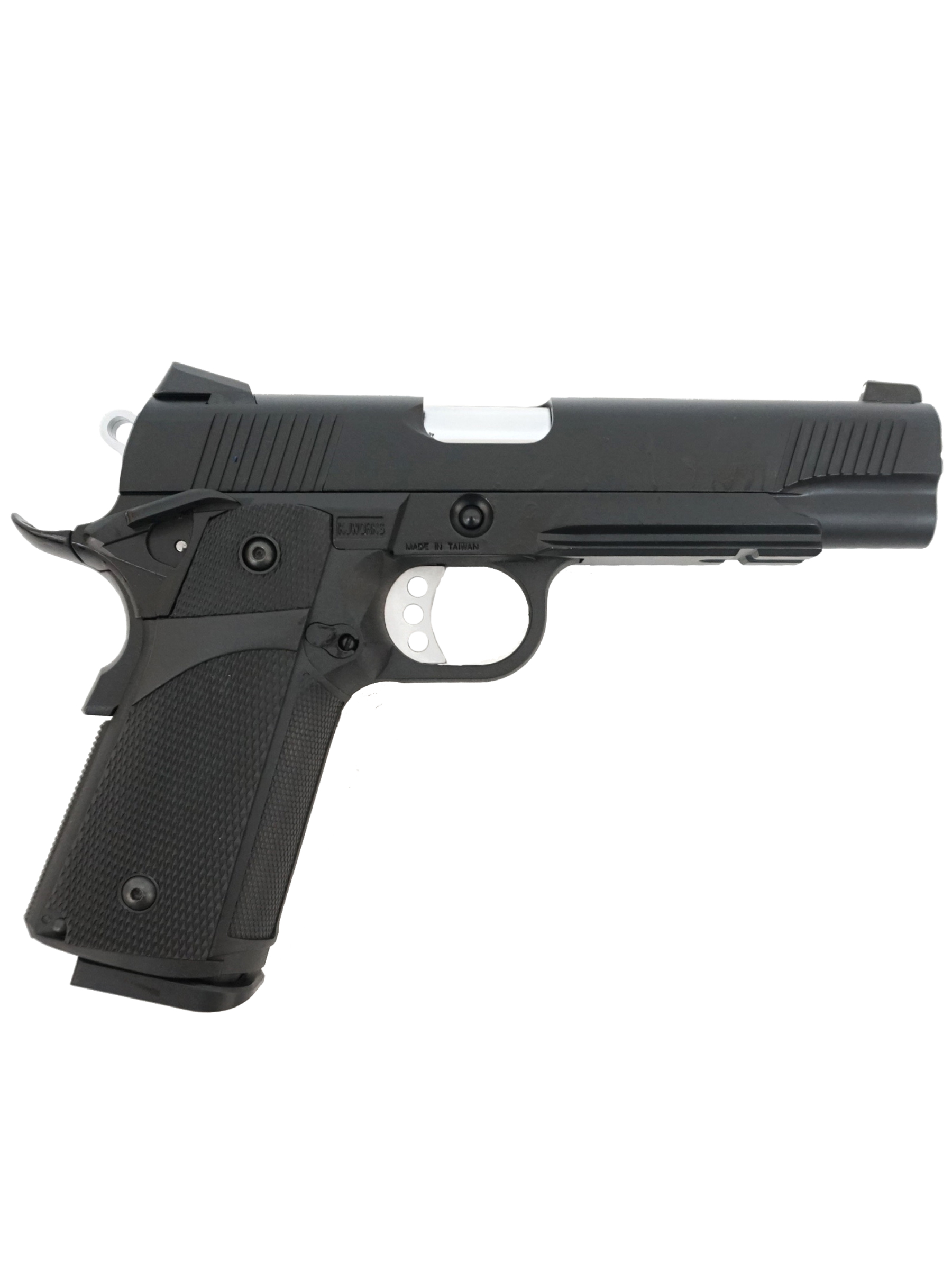 KJW KP-05 Colt M1911 Hi-Capa – это страйкбольный пистолет на Green Gas, калибра 6,0 мм (.236), обеспечивающий дульную энергию до 1,7 Дж и скорость выстрела 90-100 м/с. Он повторяет современную интерпретацию легендарного Colt M1911 от KJW – KJ Works! Этот пистолет сочетает в себе классический дизайн, металлическую конструкцию, что делает его идеальным выбором для страйкболистов.