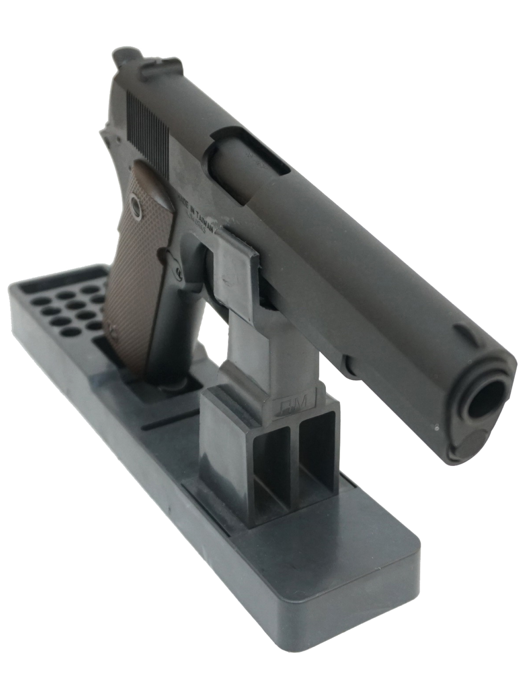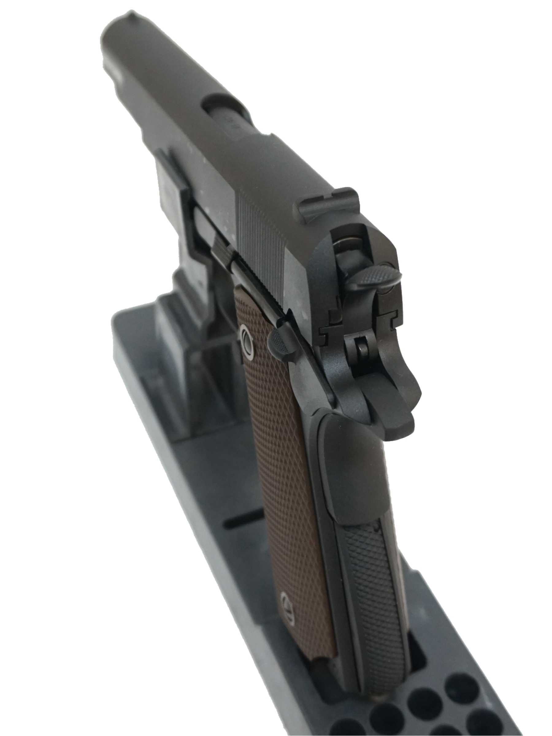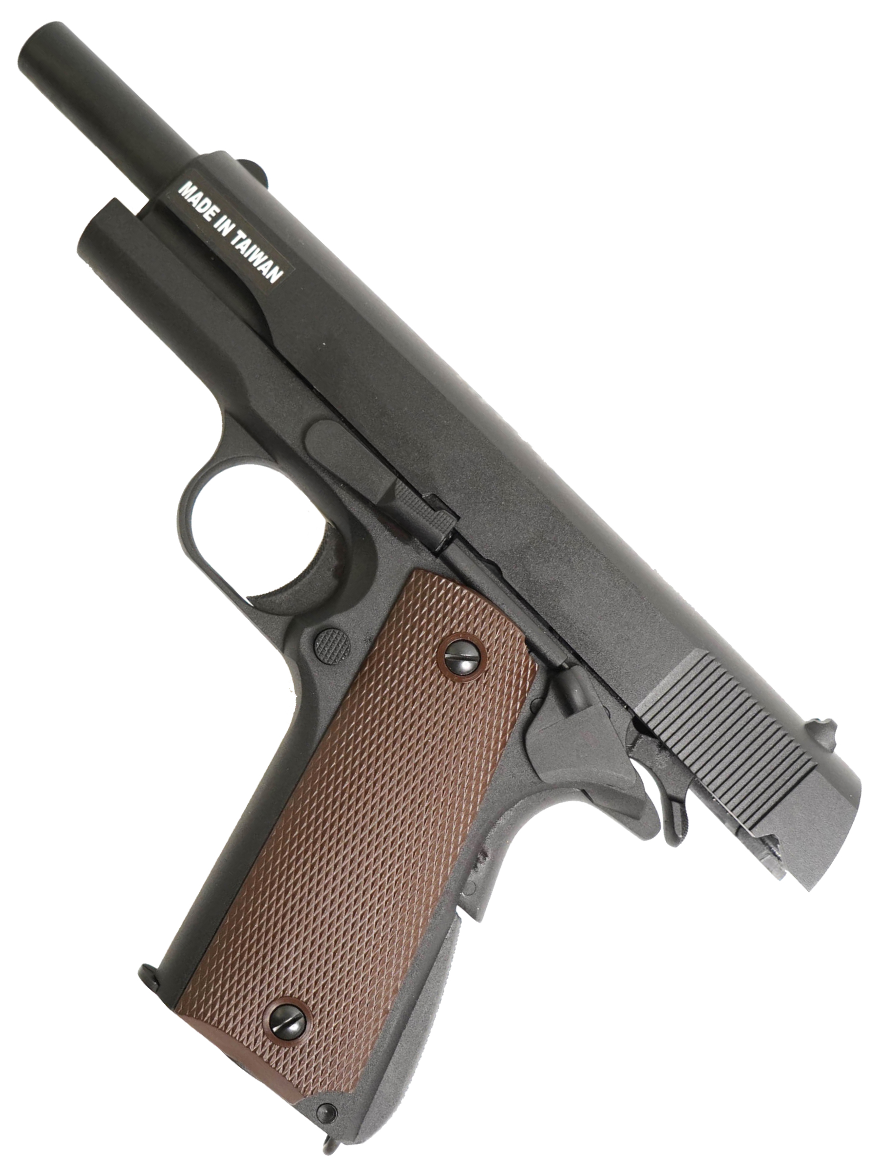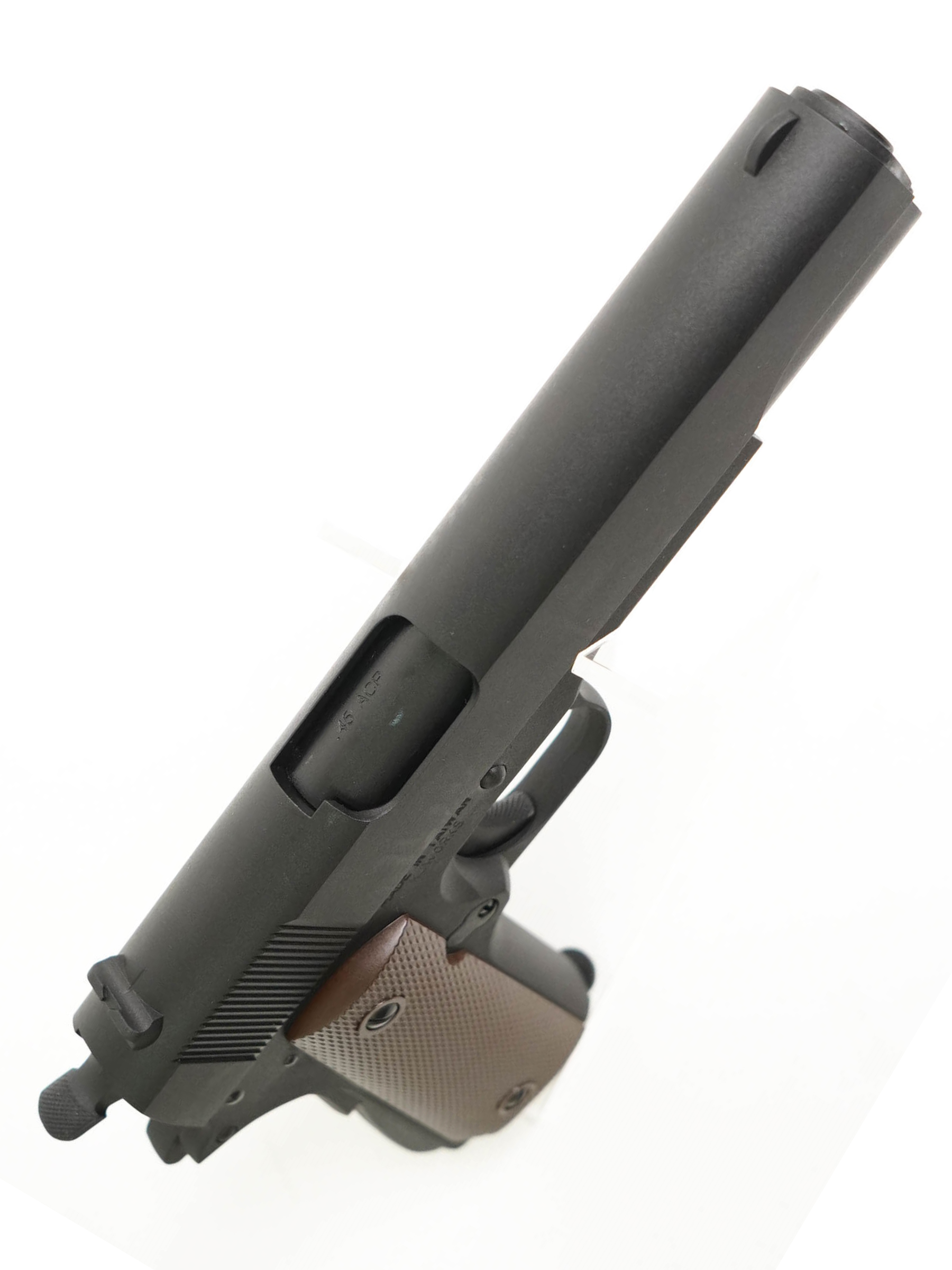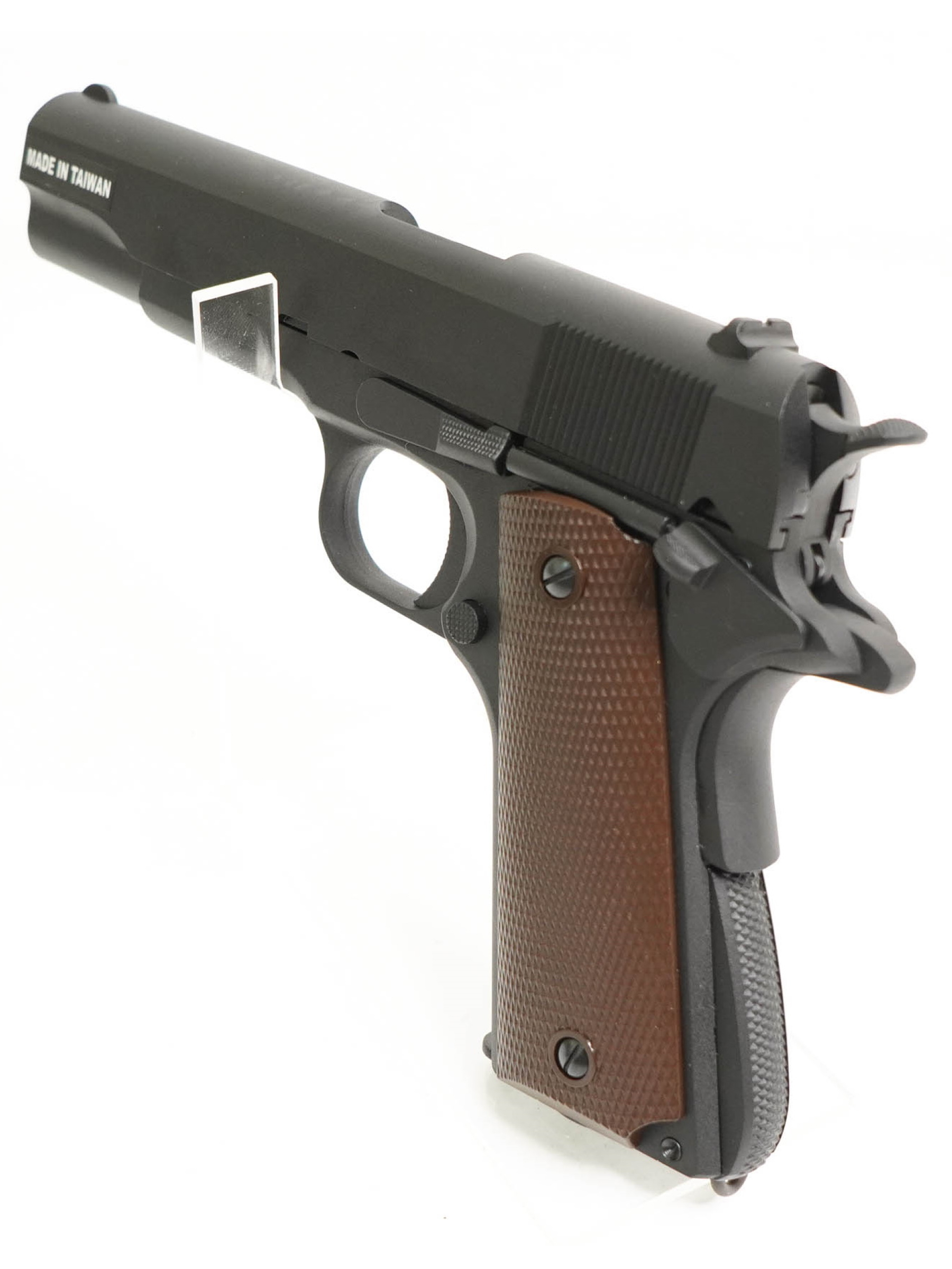 Корпус пистолета выполнен из ABS-пластика, а затвор из алюминиевого сплава, что обеспечивает надежность и реалистичный вес (960 г). Обладая длиной 220 мм и длиной ствола 110 мм, Colt M1911A1 сохраняет классические пропорции и отлично лежит в руке.