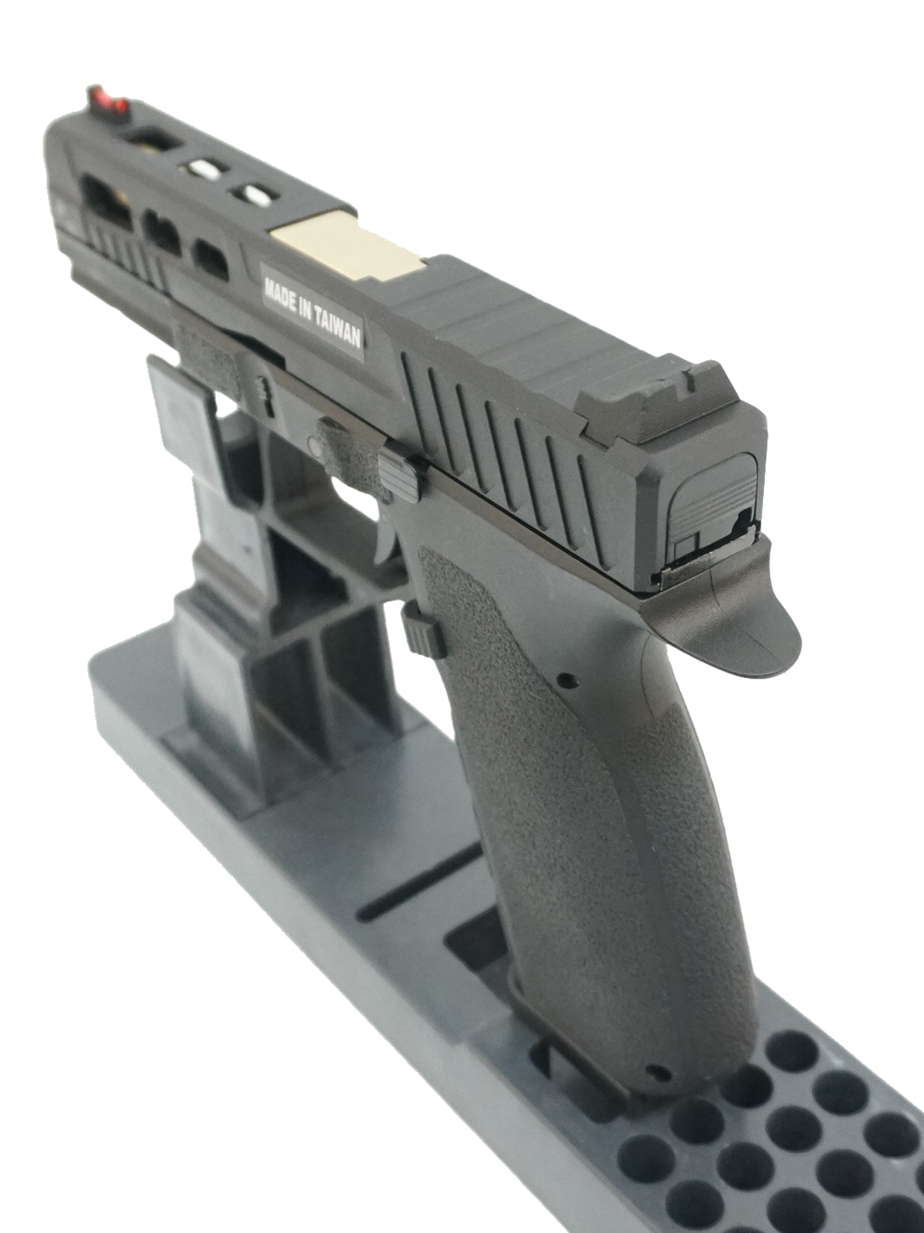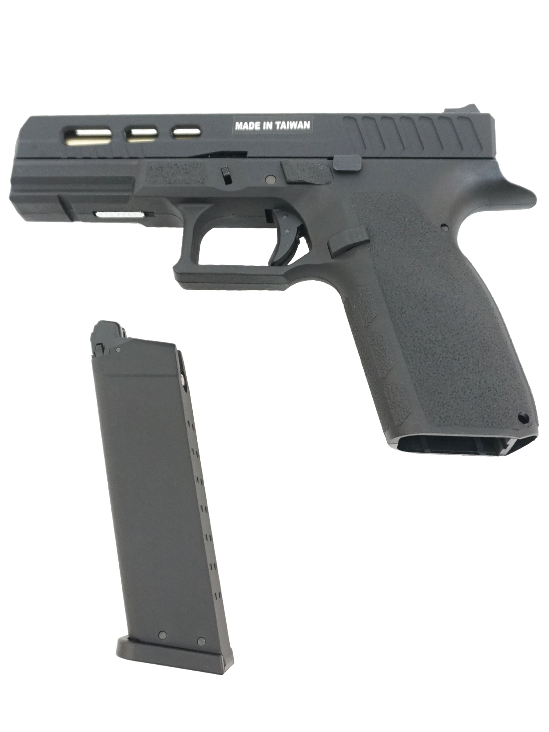 Работая на экологическом газе Green Gas, этот пистолет обеспечивает до 1,7 Дж дульной энергии и скорость выстрела около 90-100 м/с. Емкость магазина — 22 патрона, что позволяет вести продолжительный огонь без частых перезарядок. Благодаря регулируемому Hop-up, стрелок может точно настроить дальность и точность стрельбы в зависимости от условий игры.