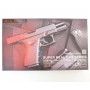 Корпус пистолета KJW KP-23 также выполнен из металла, что обеспечивает высокую прочность и долговечность. Черный цвет придает пистолету строгий и профессиональный вид. Пистолет работает в полуавтоматическом режиме, предлагая быстрое и точное ведение огня. Наличие планки Weaver / Picatinny под стволом позволяет установить дополнительные аксессуары, такие как фонарик или лазерный целеуказатель, для расширения тактических возможностей.