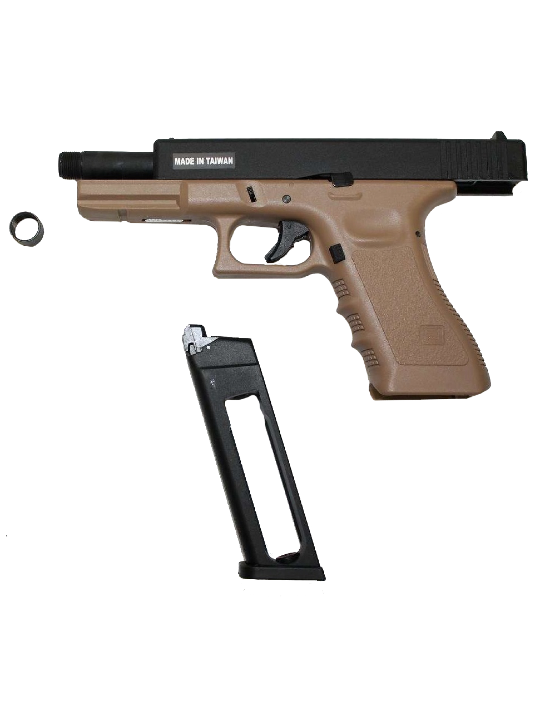 Описание страйкбольного пистолета KJW Glock G17 TBC CO2 Tan: