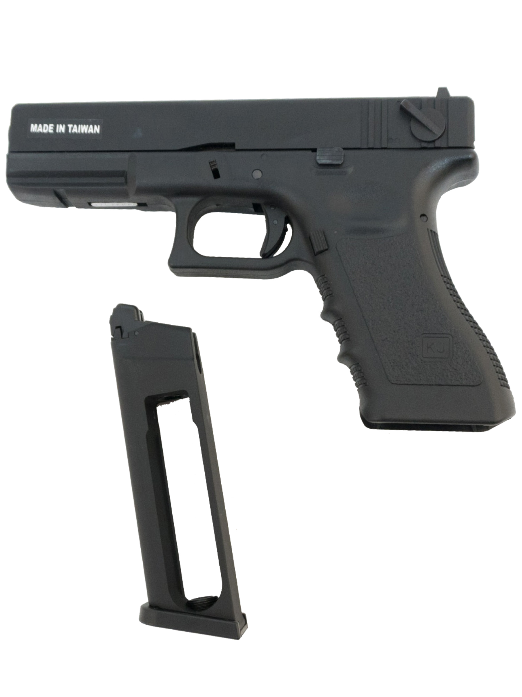 KJW KP-18 Glock G18 – это страйкбольный пистолет, работающий на 12-граммовых баллончиках CO₂, калибра 6,0 мм (.236), обеспечивающий дульную энергию до 1,7 Дж и скорость выстрела 90-100 м/с. Эта реалистичная реплика австрийского Glock 18 сочетает в себе металлическую конструкцию, реалистичный блоубэк, возможность ведения автоматического огня и компактные размеры.