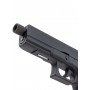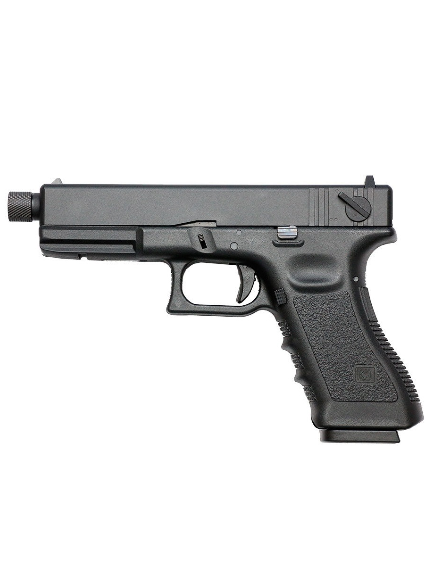 Корпус и затвор пистолета выполнены из металла, что обеспечивает высокую прочность и надежность конструкции. Пистолет KJW KP-18 Glock G18 TBC унаследовал от базовой модели возможность ведения автоматического огня, что делает его грозным оружием в ближнем бою. Пистолет также имеет полуавтоматический режим стрельбы. Главное отличие этой модели – удлиненный ствол (107 мм против 97 мм у базовой версии) с резьбой под глушитель. Это позволяет устанавливать глушители или трассерные насадки, значительно расширяя тактические возможности пистолета.