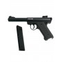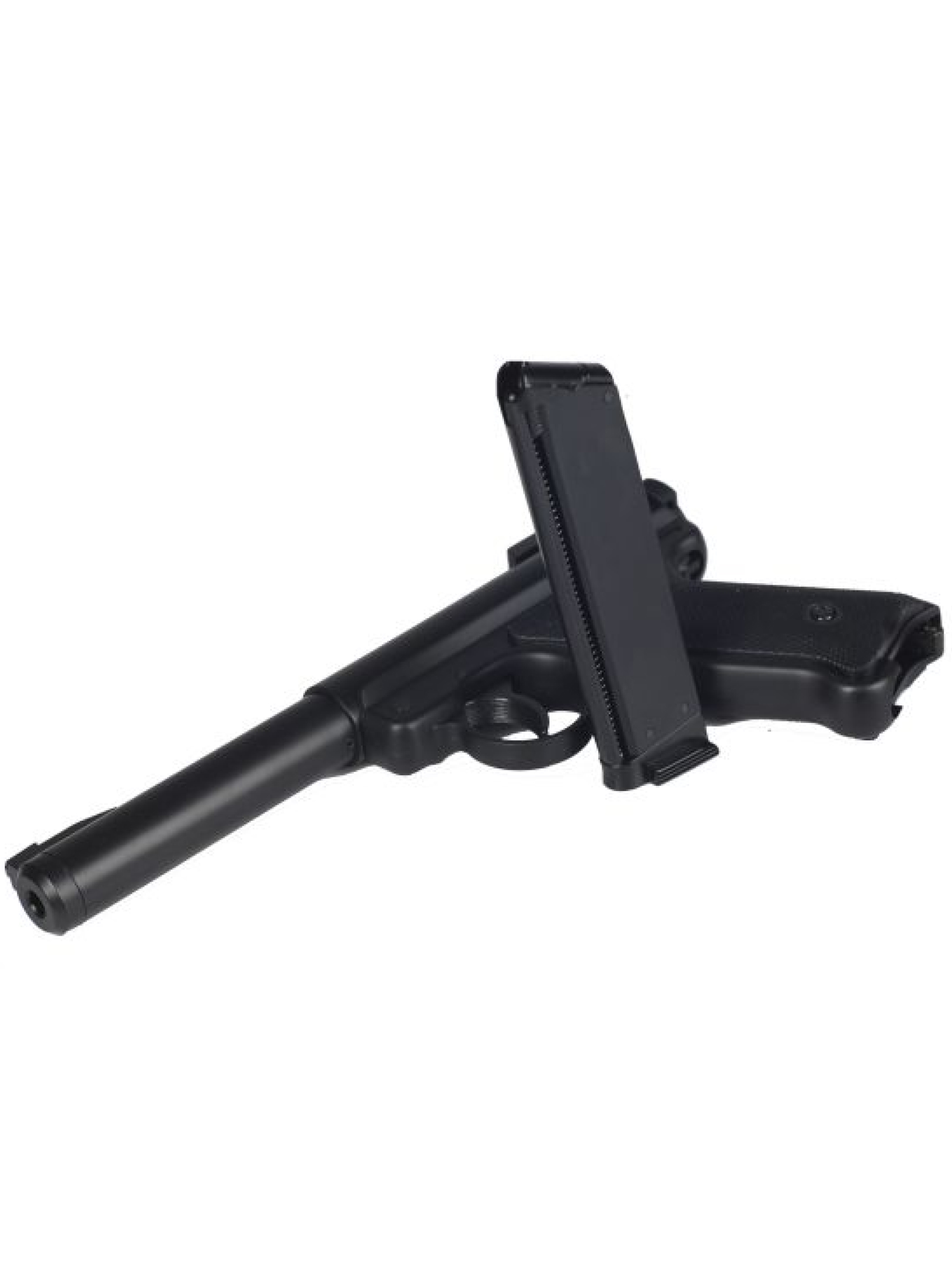 Пистолет работает в полуавтоматическом режиме, позволяя быстро и точно вести огонь. Несмотря на отсутствие Blowback, пистолет Ruger MK1 обеспечивает плавный и надежный механизм работы. Планка Weaver / Picatinny отсутствует, но это не мешает наслаждаться его превосходными характеристиками. Длина пистолета составляет 245 мм, длина ствола – 130 мм, а вес – 565 г, что делает его удобным в использовании и переноске. В комплекте вы найдете пистолет, магазин и инструкцию.
