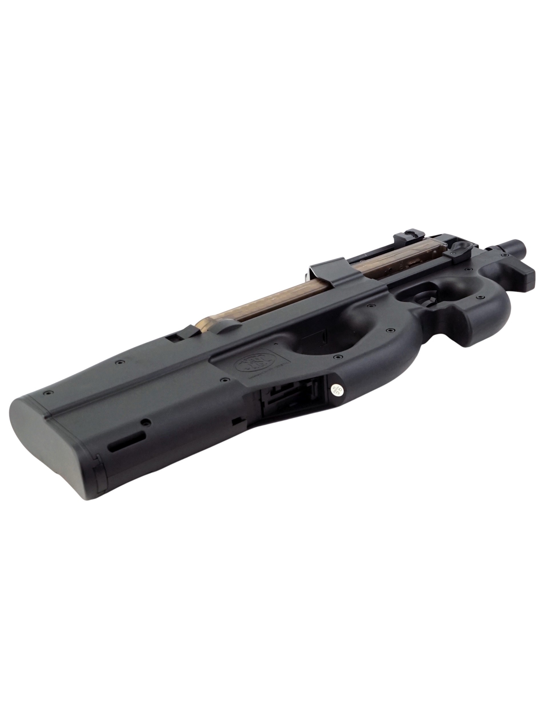 Гирбокс здесь версии 6, поэтому возможность тюнинга данной модификации весьма широкая за счет взаимозаменяемости компонентов этого воздушного компрессора с деталями других производителей. Хоп-ап регулируемый. Механический магазин пистолета-пулемета Цыма ФН П90 вмещает 70 шариков ВВ, которые вылетают из ствола со скоростью до 120 м/с. Привод может вести огонь в автоматическом и полуавтоматическом режиме, а режим огня меняется с помощью переключателя под спусковым крючком.