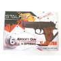 Все компоненты пистолета Сталкер СА92М Спринг изготовлены из качественного металлического сплава, это обеспечивает небольшой вес изделия и его защиту от коррозии и механических повреждений. Весит пистолет 0,27 кг, а его миниатюрные размеры (длина всего 15 см) позволяют носить его скрытым образом. В комплекте паспорт изделия, упаковка – цветная картонная коробка.