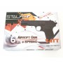 В качестве основного материала вместо оружейной стали используется сплав металла с цинком – он достаточно прочный, легкий и при этом долговечный. Пистолет Stalker SATT Spring (ТТ) имеет более легкий вес, по сравнению с оригиналом – 0,37 кг, его длина идентичная боевому образцу – 20 см. Пластиковая накладка на рукоятке позволяет удобно удерживать оружие в руке. Комплектуется изделие инструкцией по эксплуатации.