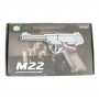 Пистолет рассчитан на стрельбу шариками для пневматики 6 мм, магазин вмещает 10 таких шариков. На вылете из ствола пистолета боеприпасы показывают скорость до 69 м/с. Величина дульной энергии изделия всего 0,5 Дж, за счет этого купить пистолет Super Power M22 сможет каждый, кто достиг совершеннолетия. Данная модель отличается простой конструкции и использования, долговечностью и отсутствием необходимости использовать баллончики с газом или аккумуляторы. Пистолет подходит для стрельбы только в одиночном режиме.