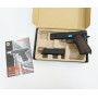 Внешний вид пистолета точно соответствует прототипу, как и процесс неполной разборки. Весит эта модель 0,95 кг, длина – 22 см. Комплектация: магазин и инструкция.