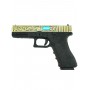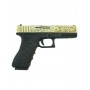 Описание страйкбольного пистолета WE Glock-17 gen3, под бронзу с гравировкой: