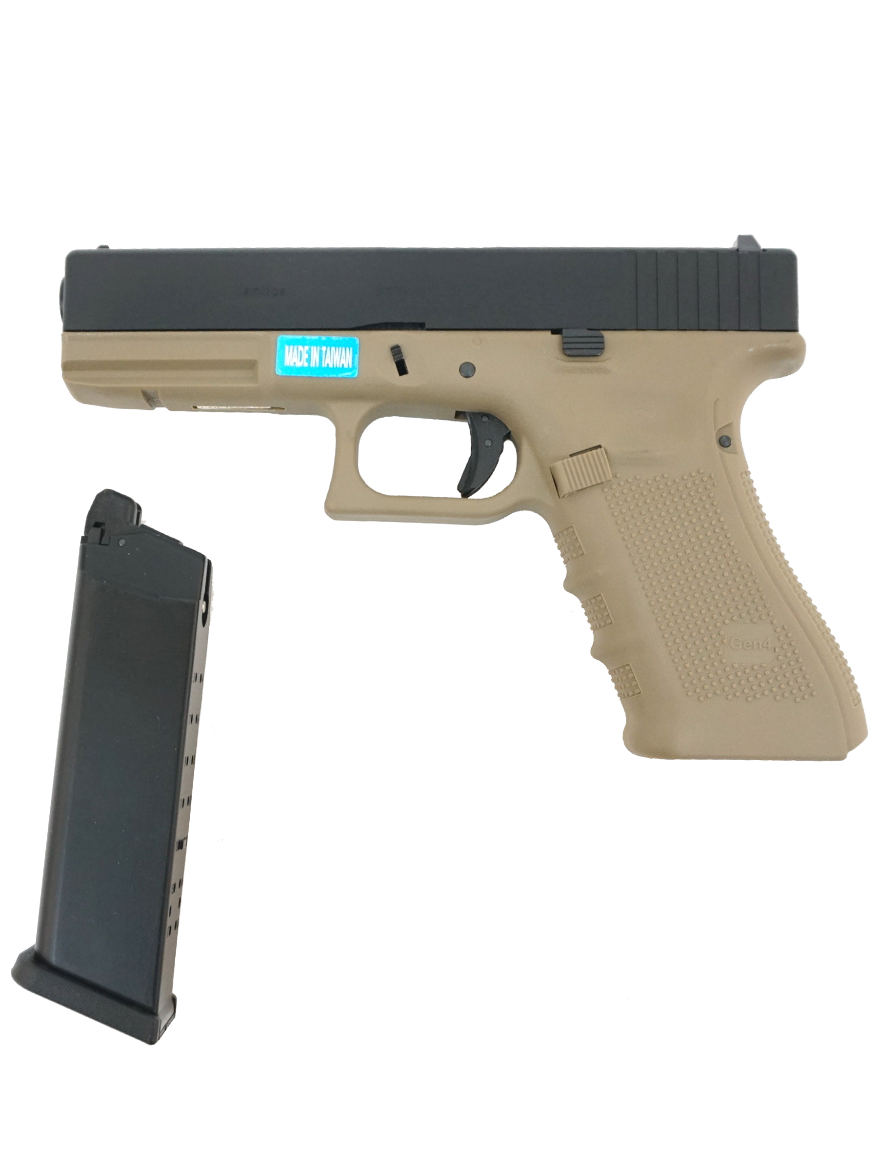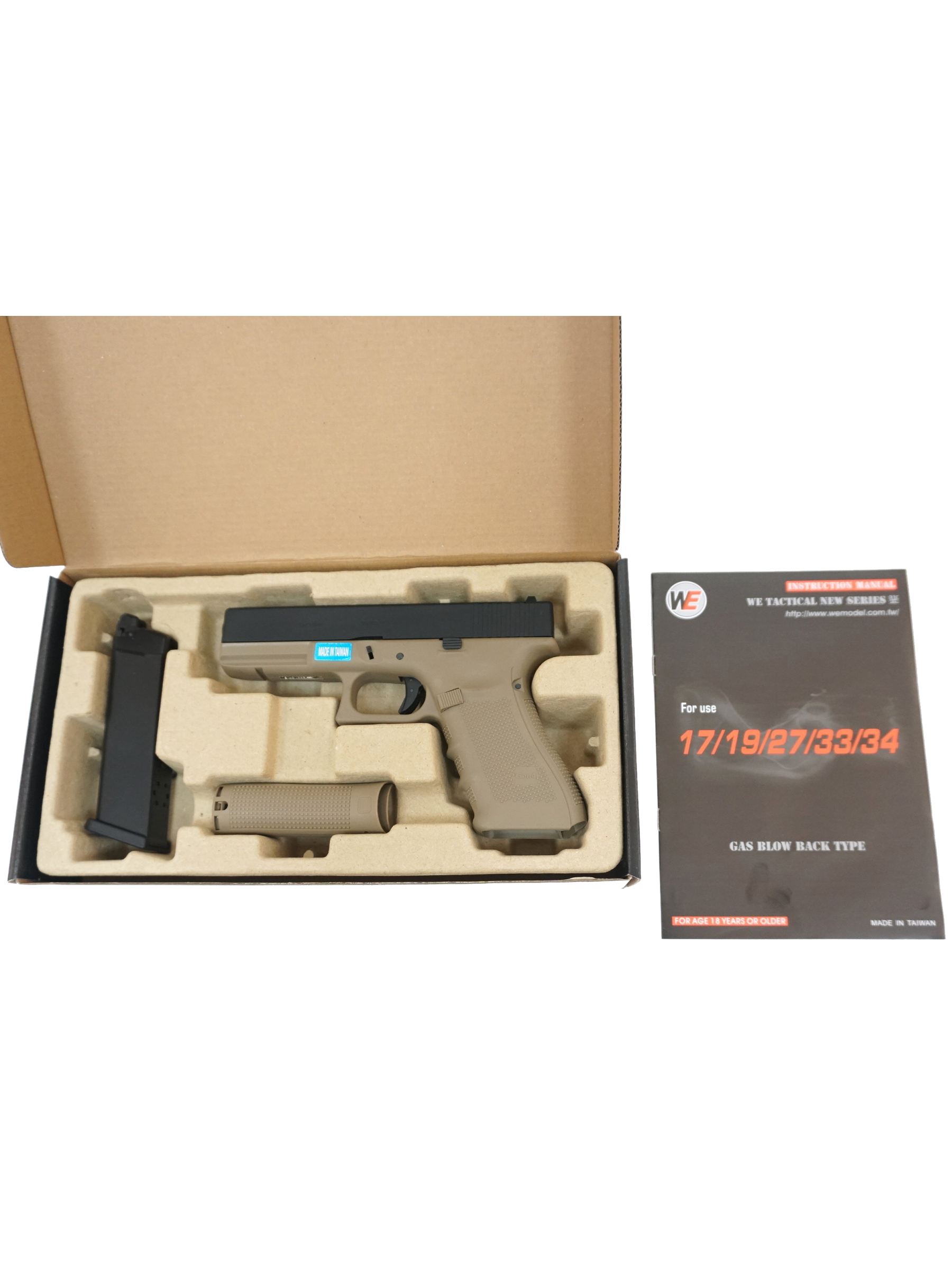 Описание страйкбольного пистолета WE Glock-17 gen4 Tan: