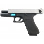 Реалистичная система Blowback имитирует отдачу огнестрельного оружия, добавляя аутентичности каждому выстрелу. Затвор выполнен из металла и имеет эффектное серебристое покрытие (Silver), выделяющее пистолет на фоне остальных. Корпус изготовлен из прочного пластика черного цвета. Hop-up фиксированный, обеспечивающий стабильную траекторию полета шарика.